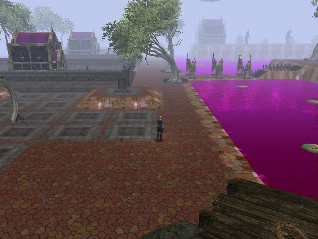I understand it is not that nice to have your work not falling into taste for the community. But if you want something as this to work, and I mean really work, then you should make it complete. Everything should already be there, create a story behind it, create the creatures, and make it so that the area is a hole by itself and is complete. That way a player is forced to follow your line of thought and it will be more appreciated. But if I look at it now, I only see water that is most probably poisoned, and spasmatic Goblins have been playing paintball causing the houses to turn purple. Also what I meant by complete, the area is not living, it is a dead thing. When I look at it in the Toolset I only see bridges with houses placed there and there. Nothing is living there, or has a meaning of existence (Paulo Coelho).