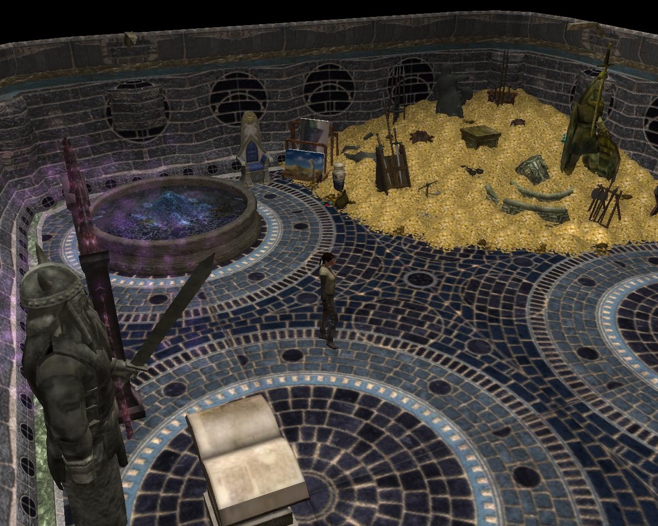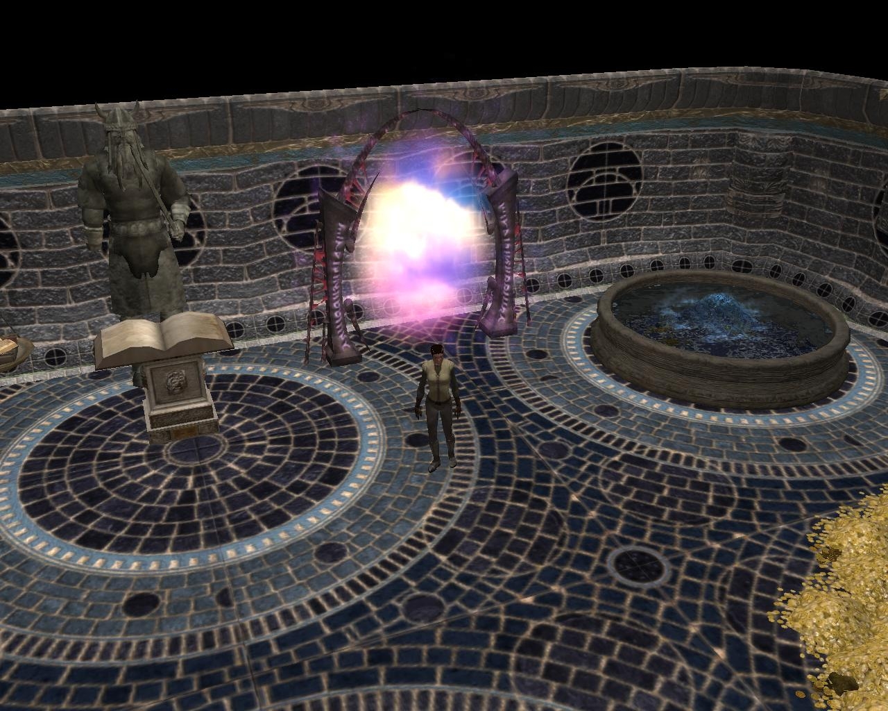This is what I use for the starting area of my campaign mod, but it could be used for other things. Make the portal usable, and turn it in to a wizard lair! Change some placeables and make it a secure hidden vault in a mansion! I'm sure there are lots of things that can be done with it. All I ask is that you give me credit if you use it. (And yes, each and every little gold pile was hand placed...).