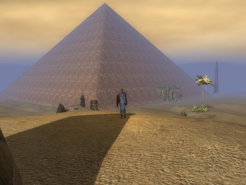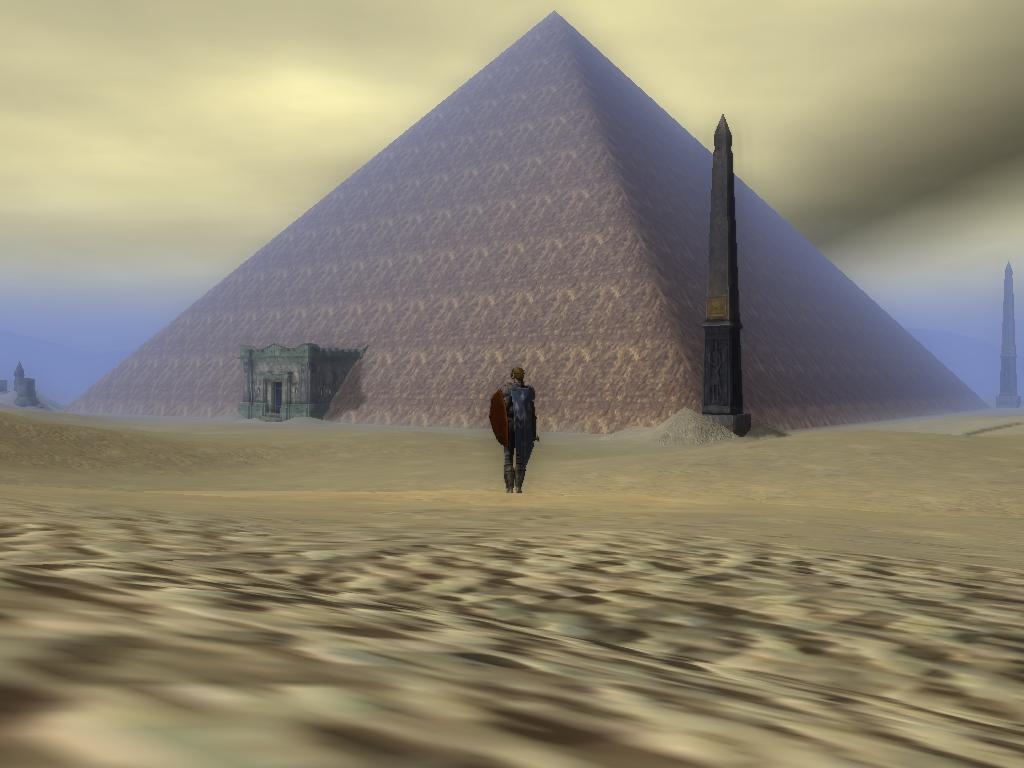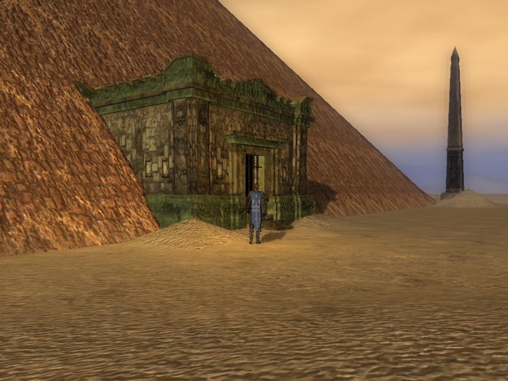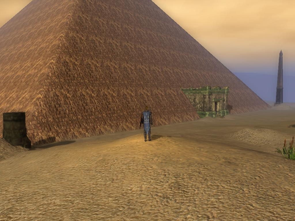 The area is only 16x16, and the Pyramid is actually a part of the terrain. I just raised up the terrain in the desired shape and then texturized it. If you want the pyramid to face a certain direction, then just change the direction "North" is facing in the toolset. I'm sure that someone can create better looking dunes than my feeble attempt, my main concern was raising the temple.