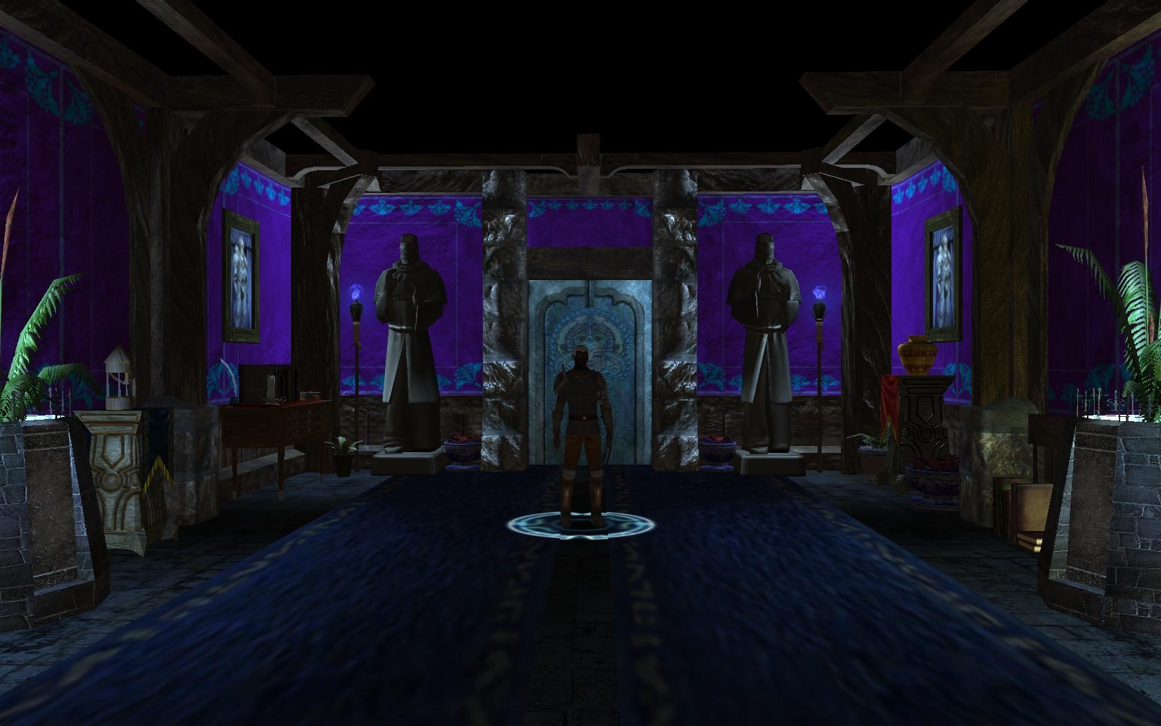 Original idea included many lit candles and candelabras scattered throughout the shrine floor, in order to convey a heavy ritualistic tone. Unfortunately this was impossible, since dynamic lighting and shadows are an extreme resource hog even for the latest graphic cards. Unwanted lights and effects can be removed for better performance.