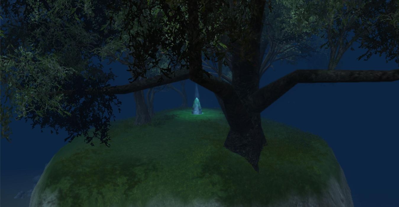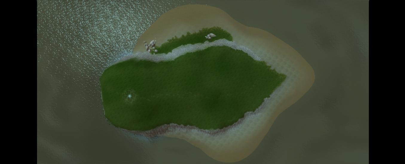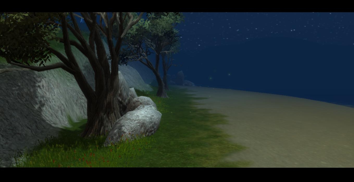 Just a random island on which to spend eternity. Features a beach, a few rocks and trees, fireflies and a mystery rock lit up at the peak of the island.