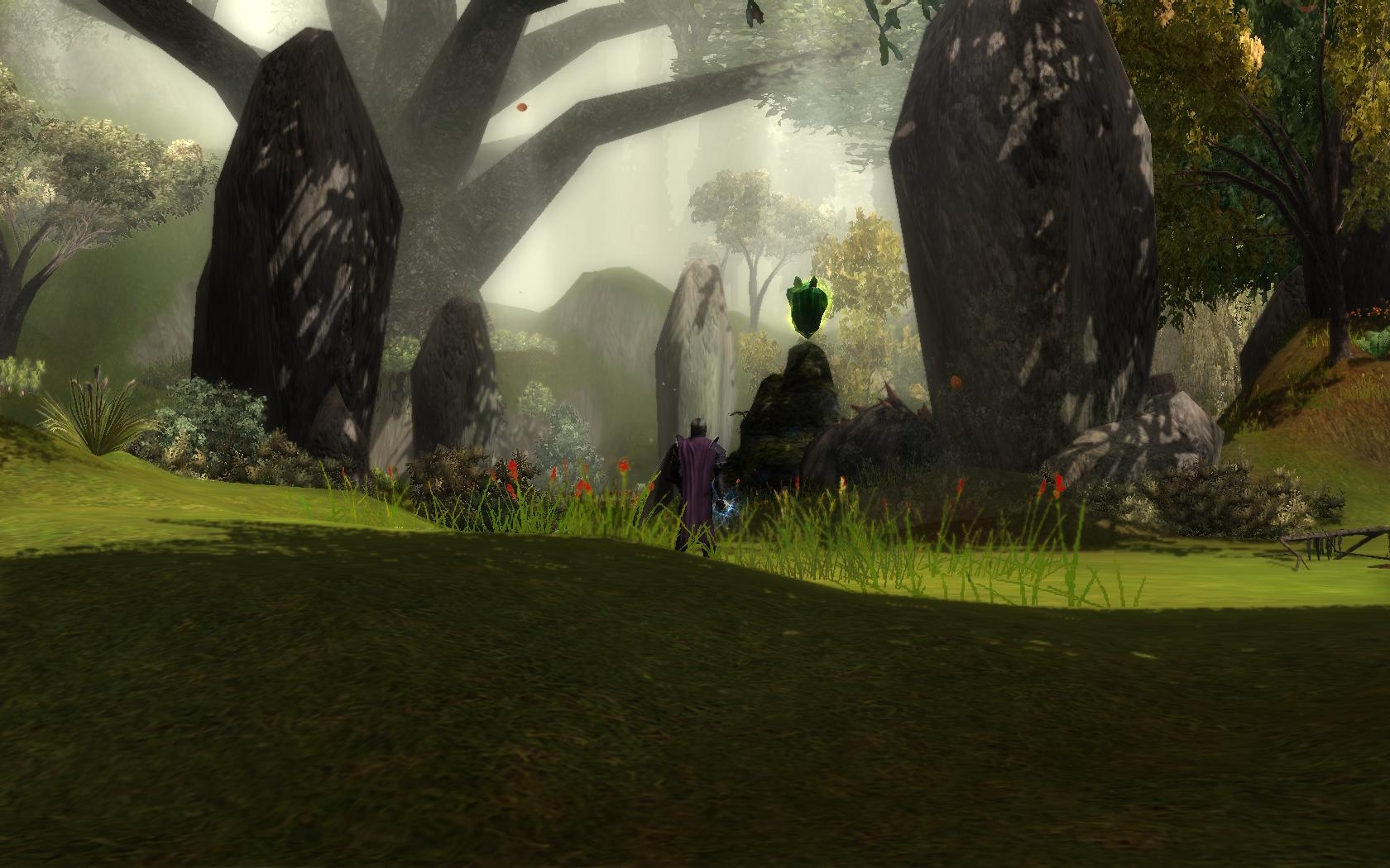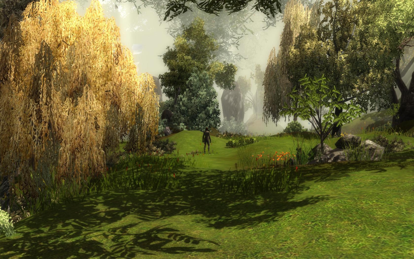 One thing kept the area from being completely perfect. The walkmesh is basically one long path to a dead end grove-area, which can lead players to feel as if they're being railroaded. The area would be much better if the walkmesh a branch or two, so the player could get a sense of exploration. It doesn't matter if the other paths are just dead ends - the impression of exploration is what's important.