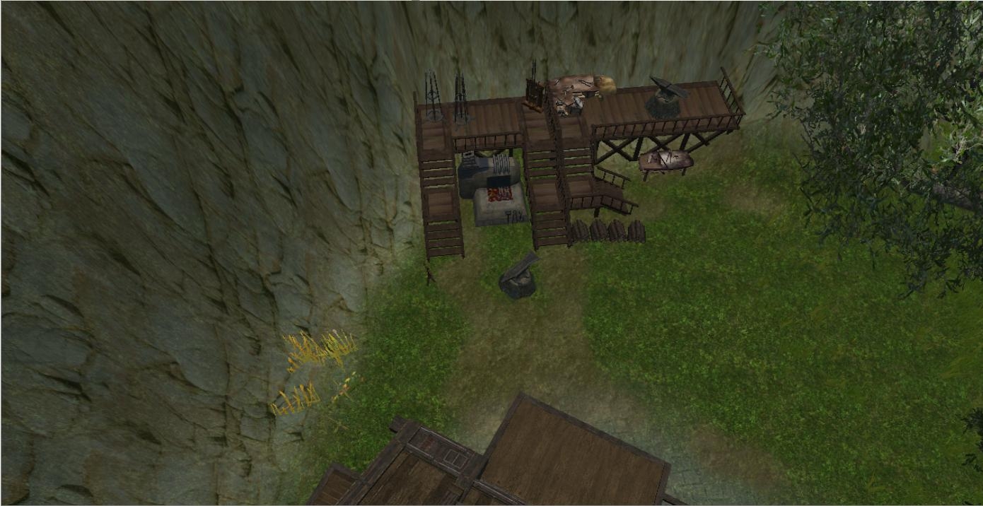 I place a Blacksmith shop in the back cornner of the area and decided to make it an outdoor area. Next the the blacksmith I got creative with a house and made that the weaponsmith/shop.