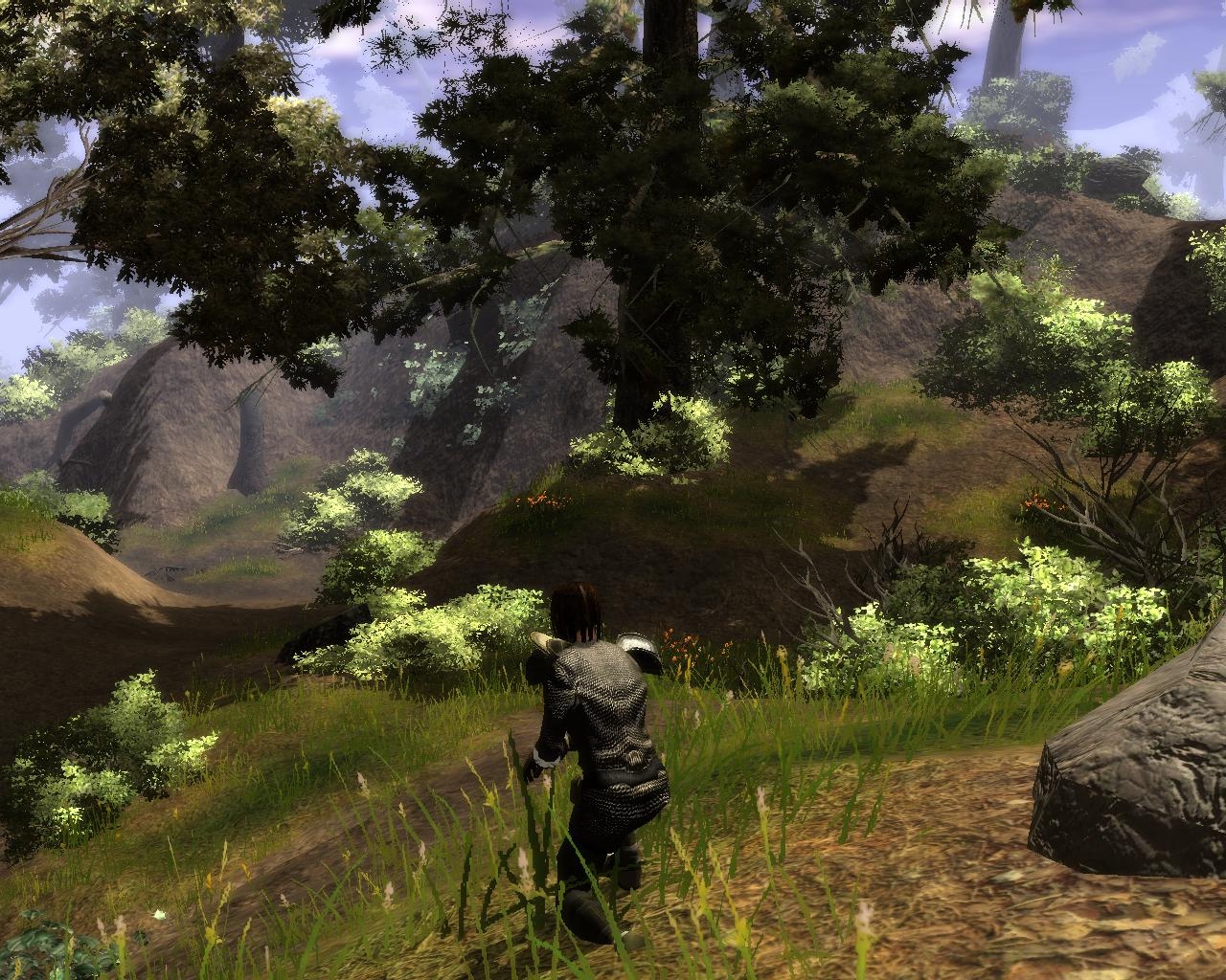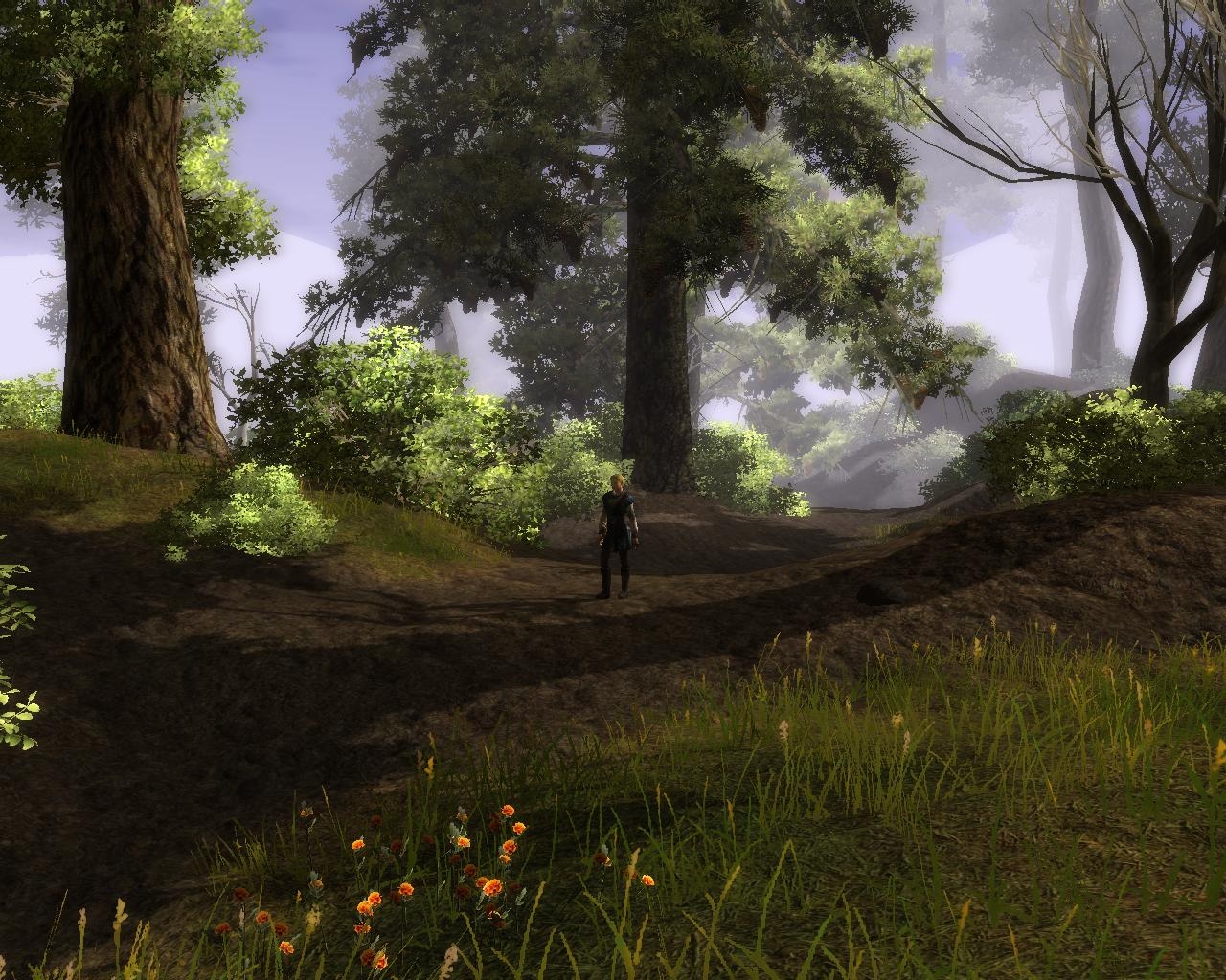 I tested this area on a machine that just barely meets the system requirements of the game. With all shadows turned off, I was able to achieve between 10 to 15 frames per second in this area. The frame rate will likely degrade during combat encounters, although it's difficult to tell to what extent. A higher frame rate can probably be achieved by reducing the number of tree types in this prefab.