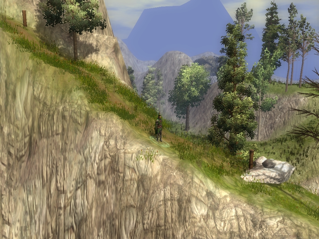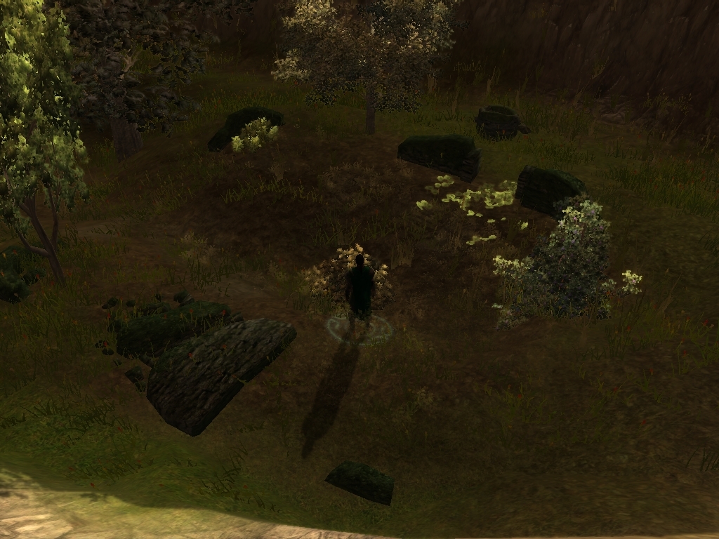 7) Texturing. I'm not gunna harp too much on this, but a few recommendations. Never use Grass01 as the main grass. One of my personal peeves that just annoys me. :) When texturing, you want to try and blend things together. Use a (common) grass texture like Grass19 and make the area appear more grassy with some patches of rocks (Grass01).