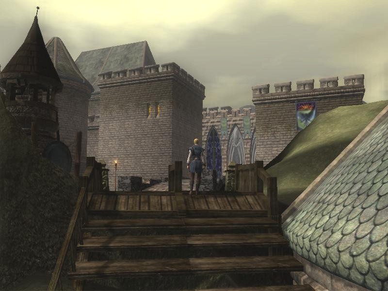 A well-worn road leads down through a desolate landscape, amidst the slopes and crags of mighty mountains. The old road ends at the very base of a great fortress that towers over all of it's surrounding lands, a work of ancient artisans who toiled in a distant age.