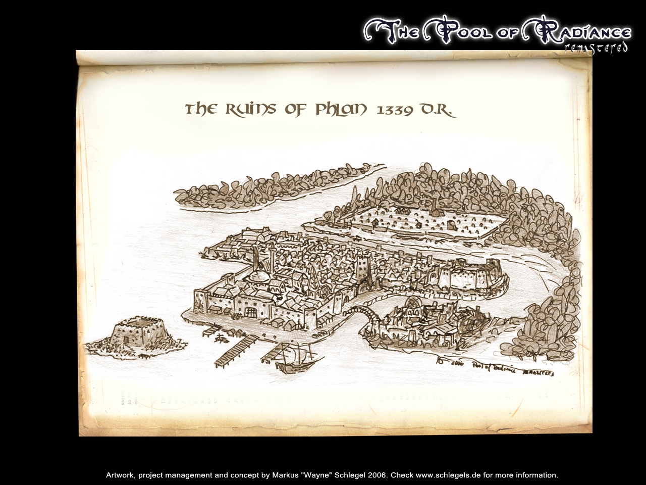 This area was taken from my award winning campaign Pool of Radiance Remastered. I tried to stick to the sources as close as possible and this is the result. This is only one of several interlinked areas of Phlan. You can see some landmarks of the adjoining areas in the outer parts of the area. The walled settlement is being reconstructed and so it will change