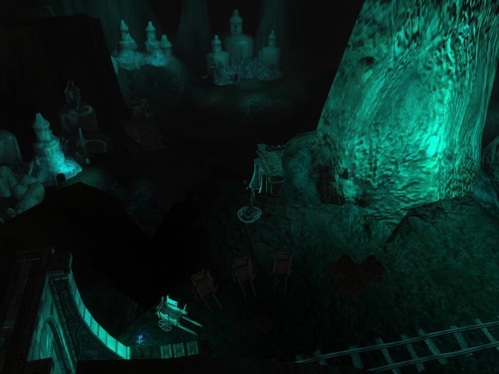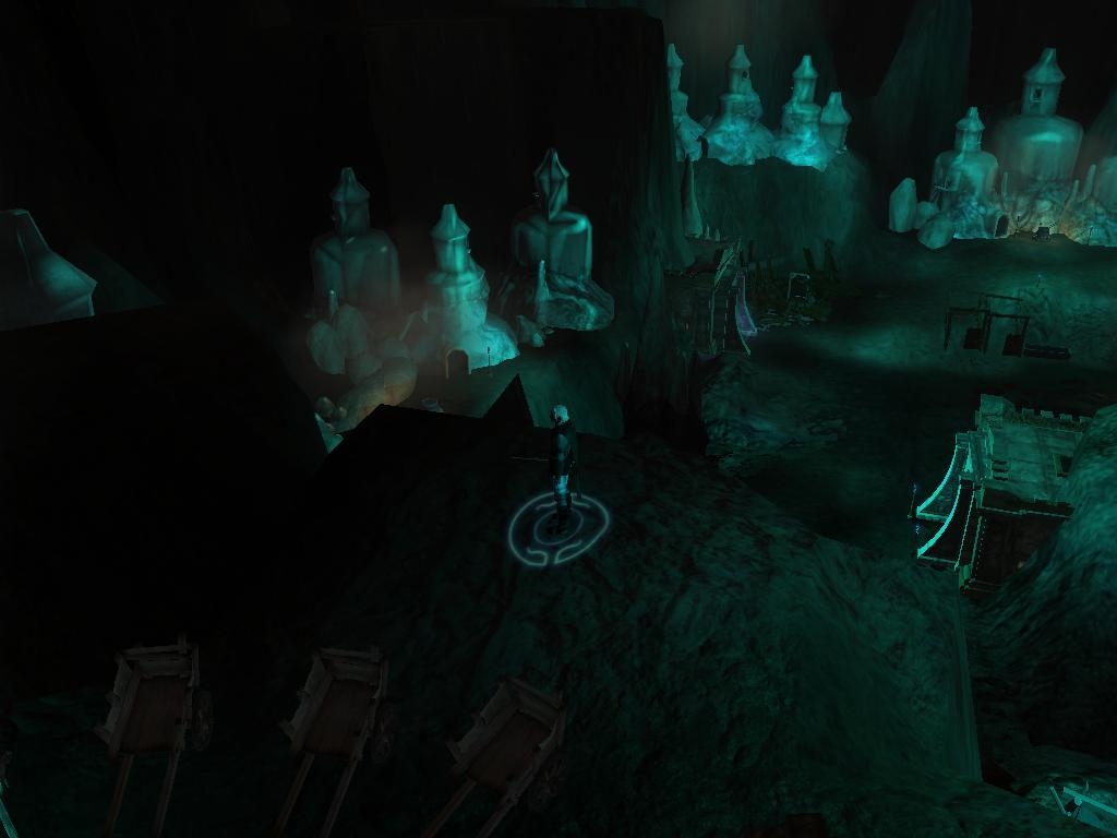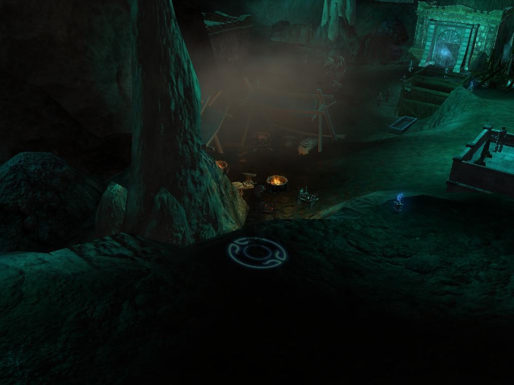Although underground, this area uses the NWN2 engine for exterior areas. This area also needs Botumys drow cave placeables to work properly. (Thank you Botumys for your great underdark placeables) Some people who know my prior works will recognize this area - it is the main cavern of a large svirfneblin complex you are forced to infiltrate in chapter 2 of my A Hunt through the Dark series. The svirfneblin dug deep into the cavern and the huge stalagmite in the middle and made this place their home for decades.