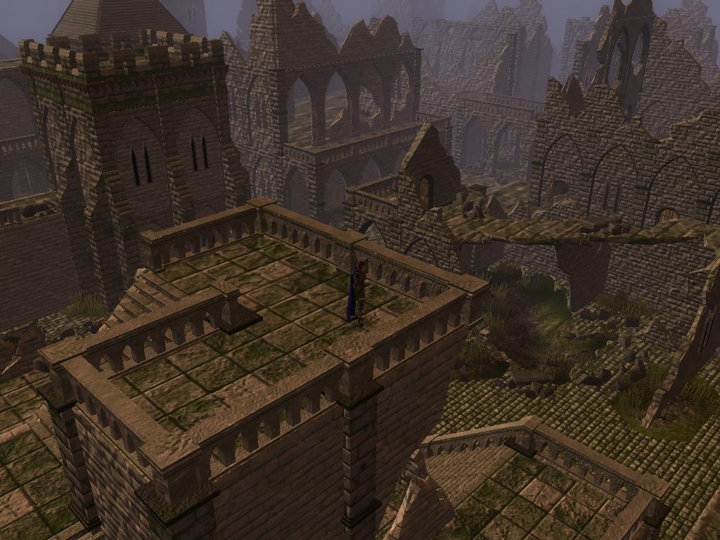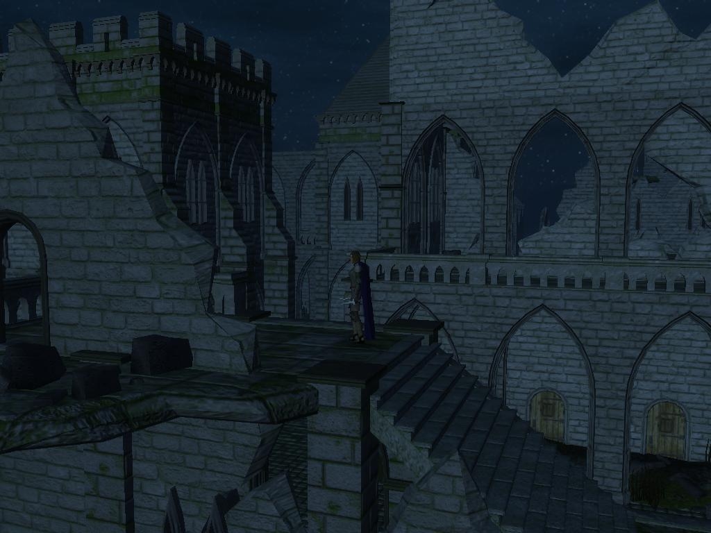An extra demo for my Building Construction Kit II. This is a devastated city with a complex walkmesh made up of platforms, balconies and enter-able half-collapsed buildings.