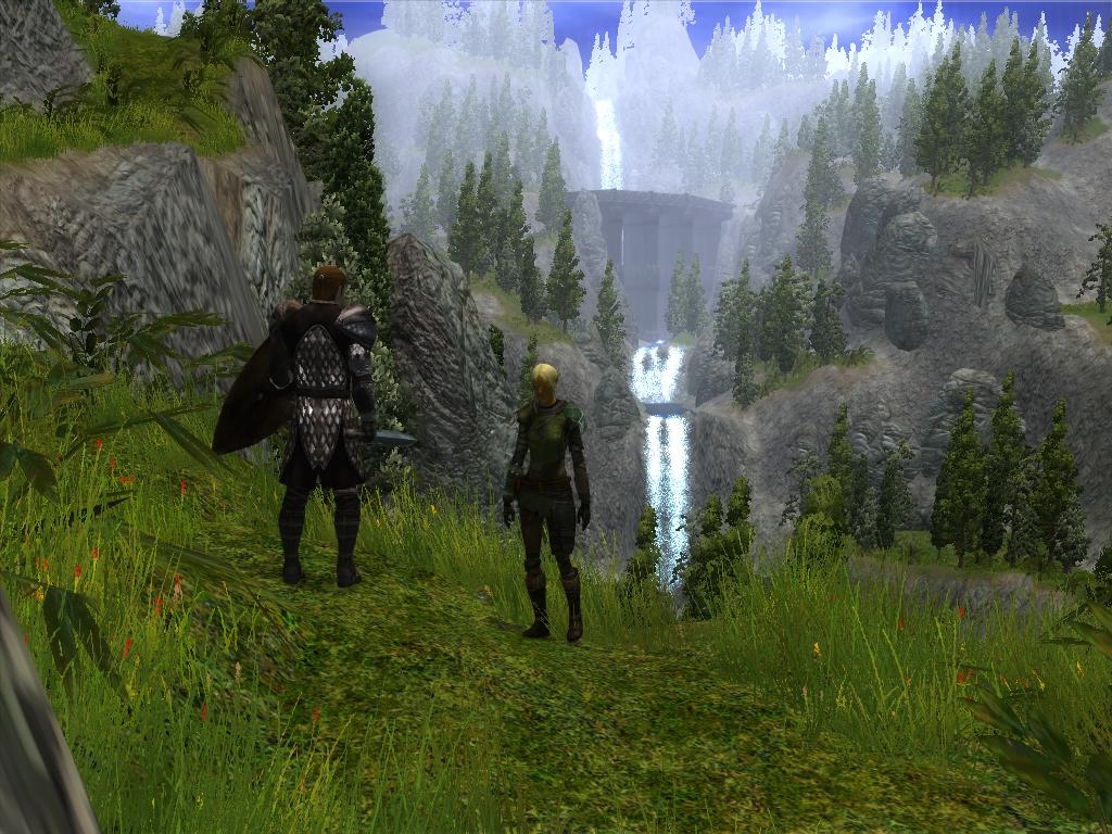 Nice artwork. I don't much care for the shrubs. The pro's imo r the nice path design, good use of height, fine texturing, appropriate terrain molding and nice tree layout. the cons imo is the clutter of the shrubbery, the tightness of some ledge work (in relationship to actually playing a game of nwn in the area), and the clunkiness it runs at. I run a core duo x6800, 2 gigs of corsair pc8400, and an 8800gtx, which imo isnt super fancy, but it isnt exactly junk either.