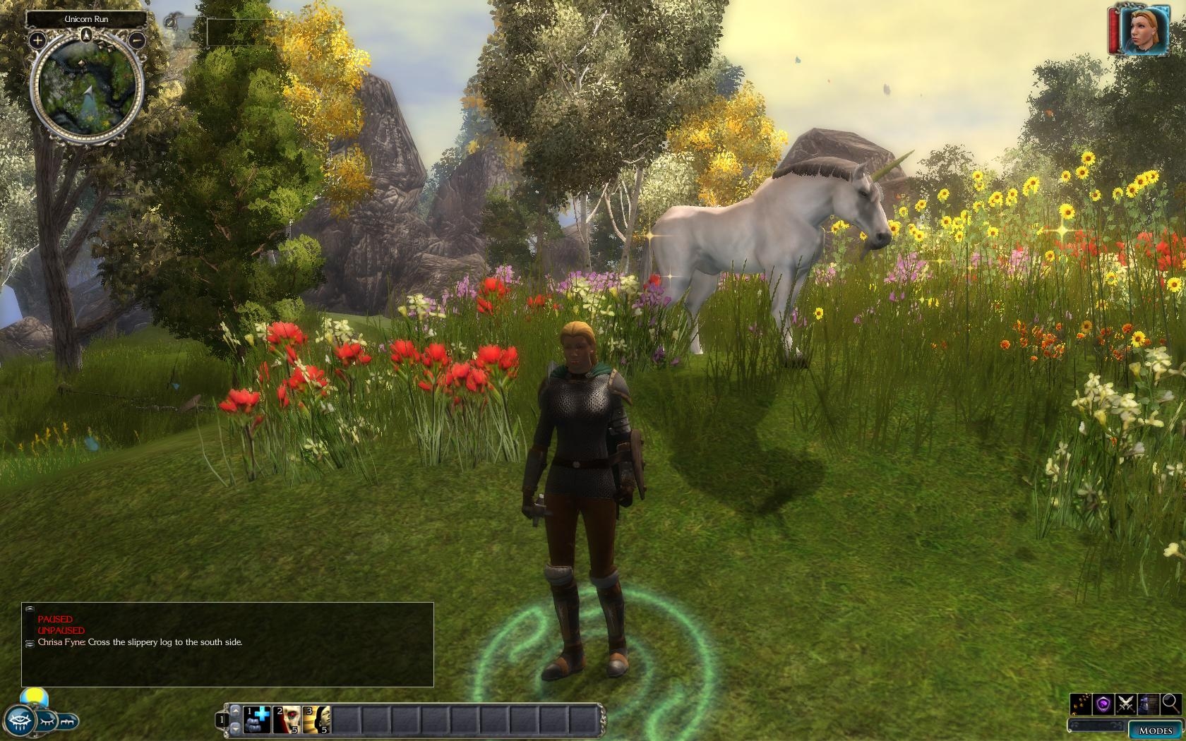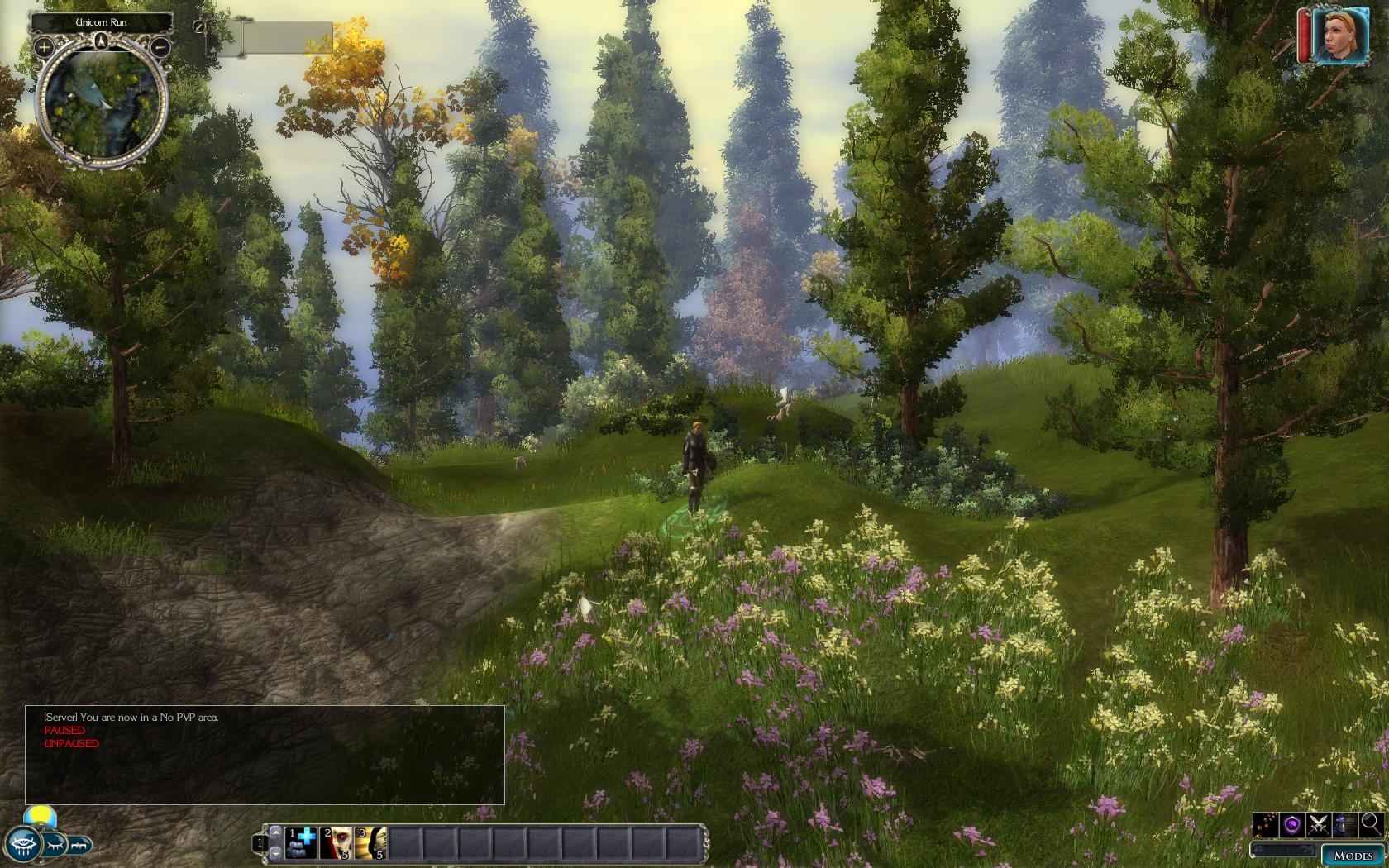 I purposely made the area as unsettled by habitation as possible with the exception of a few fey creatures. There are plenty of hills and rough terrain, which is how I pictured Unicorn's Run would be like. There might be a few problems with the walkmesh and trees, but I didn't have time to go through everything thoroughly. Hope you enjoy exploring!