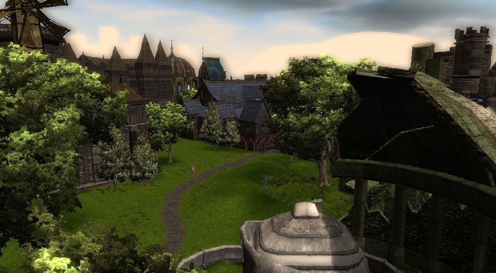 Nice area. Good placement of buildings. Seemed a little cramped for space in the town part. Good attempt with the color tool in the grassy area. The grassy area could have used a few more placeables to liven it up.