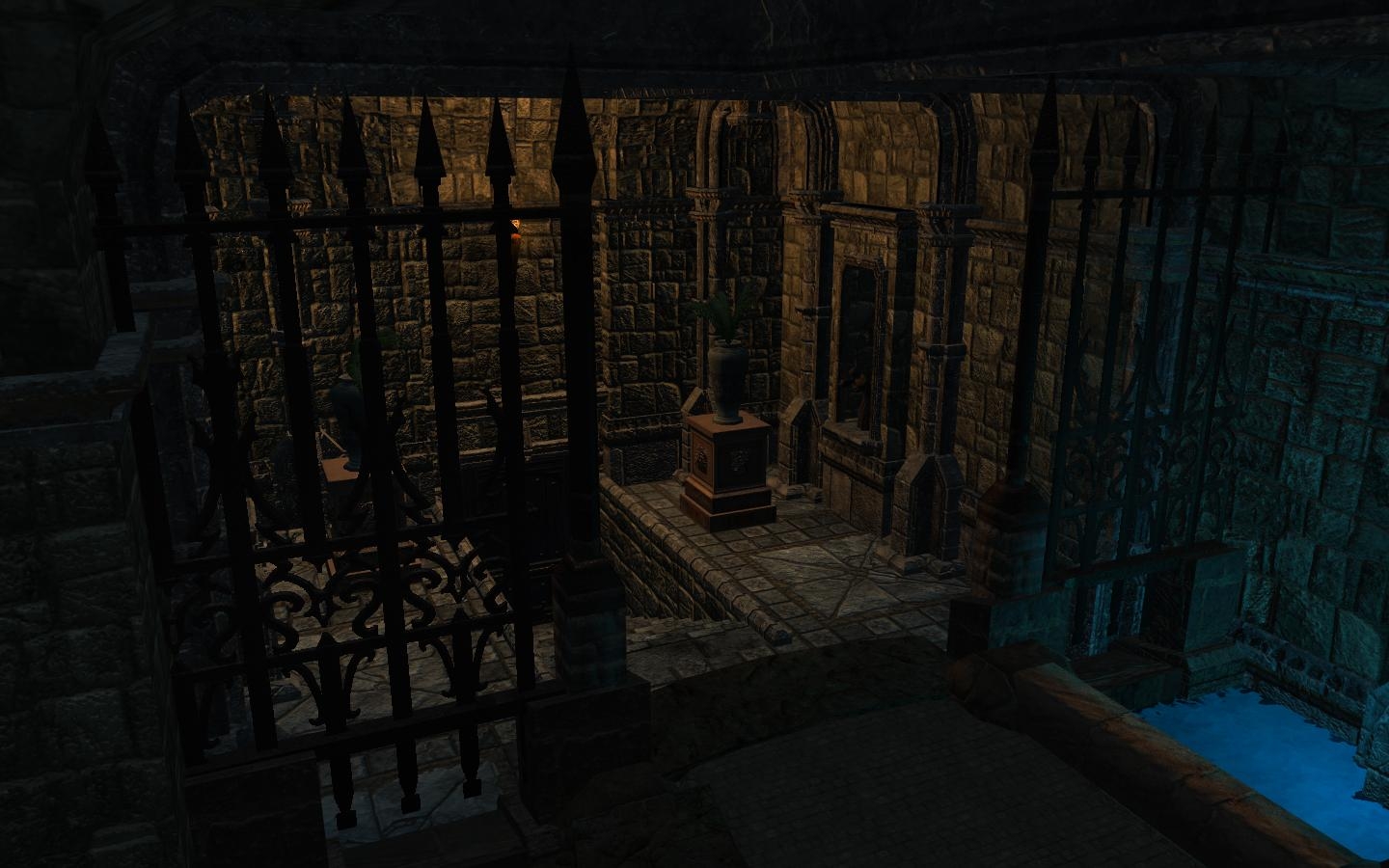 I went around your area through the toolset, and it looks fairly well done. You accomplished the look and feel you went out for. I really liked the room with the dead man hanging. The plants were a nice touch too.