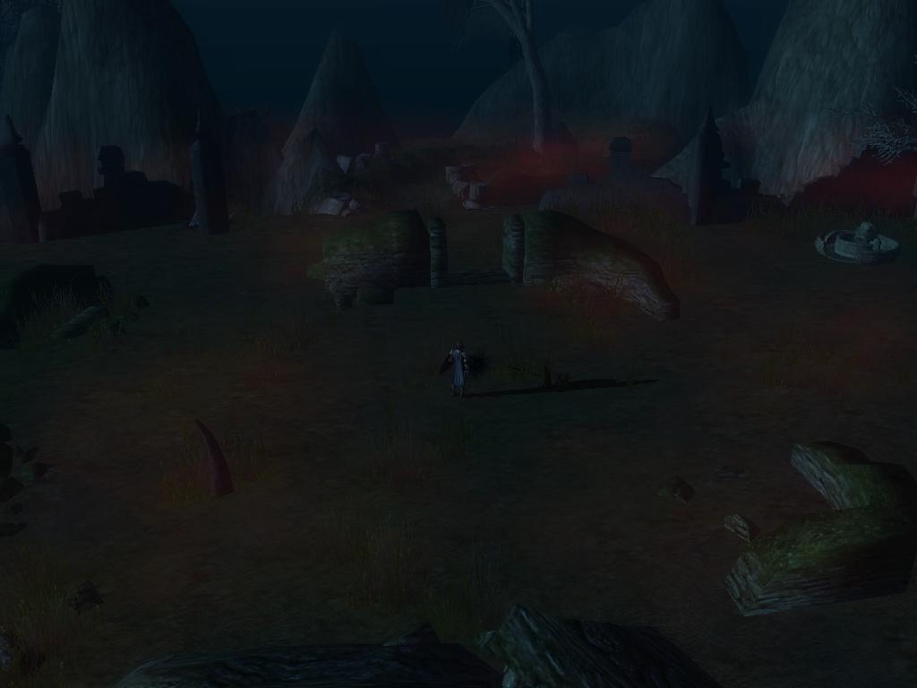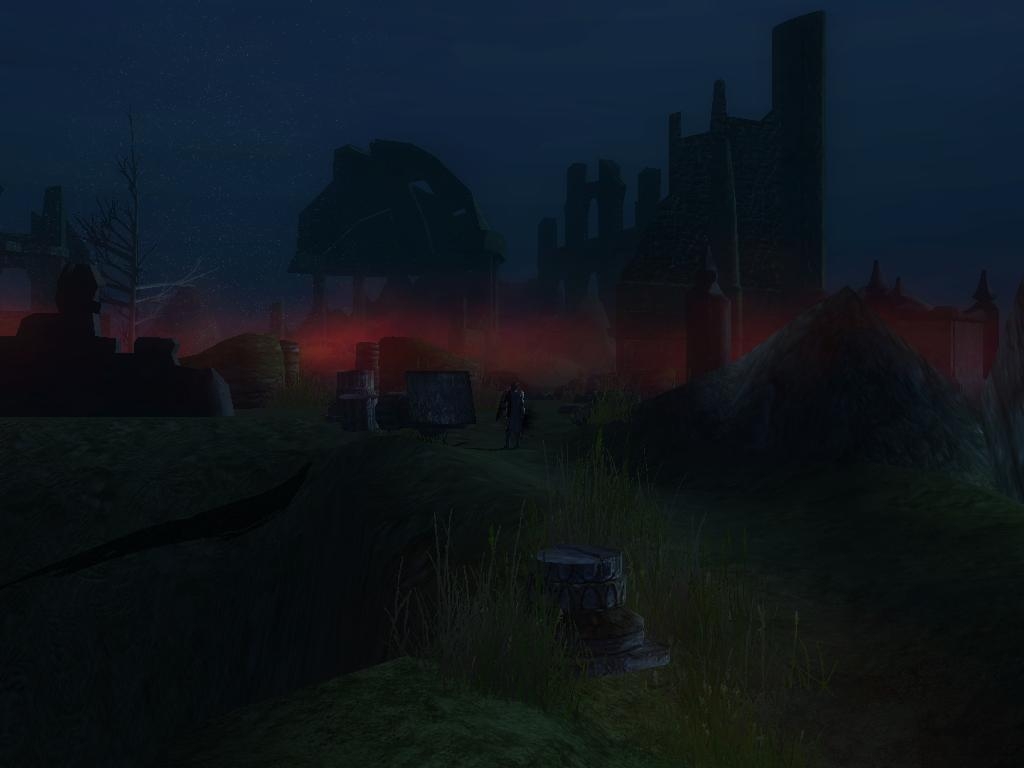 While you've had some good ideas with these areas, I feel like they all could do with more attention to detail. A lot of the areas feature a large amount of fairly flat terrain, which detracts from their overall appeal. The graveyard area is probably the best in this regard, as the walkable area features quite a lot of terrain variance. While the ruins also feature terrain variance, you've made the cliffs a little too steep and thus the cliff textures appear a little stretched.