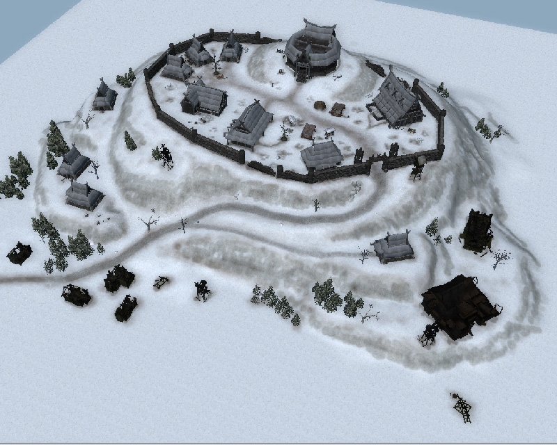 This is a good winter town. I like how you put the town uptop of that hill; it was a decent use of height.
