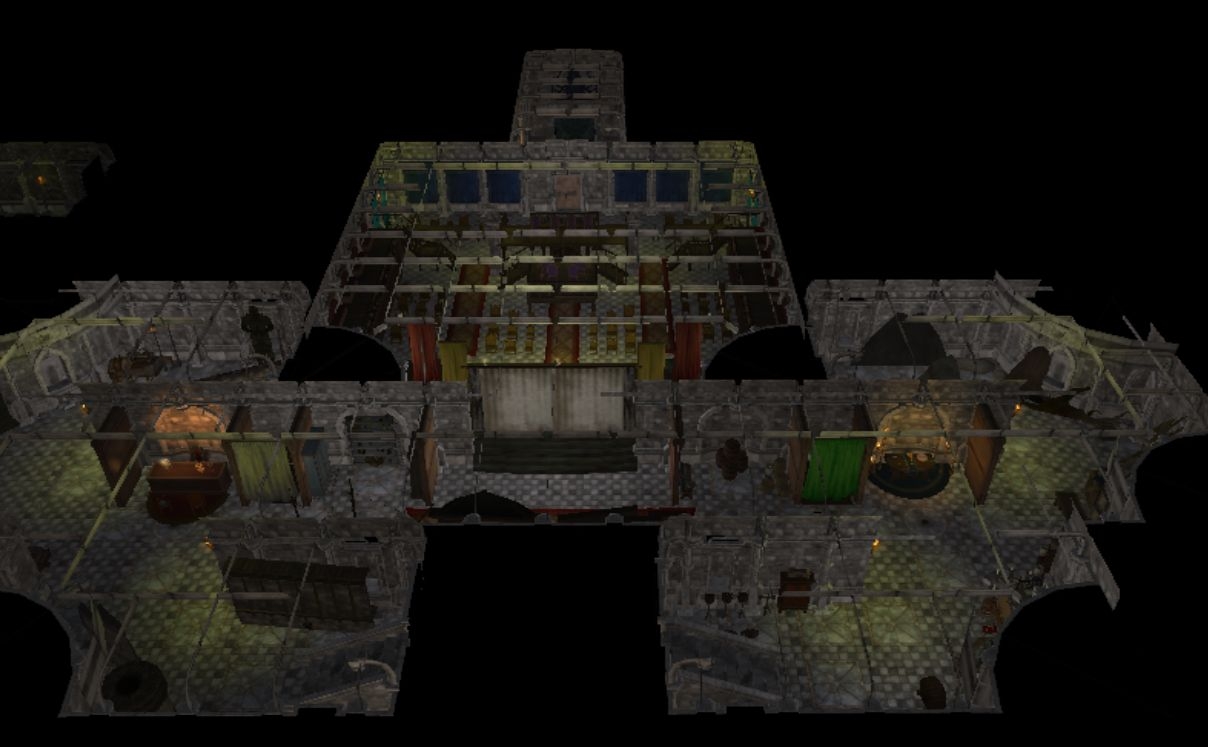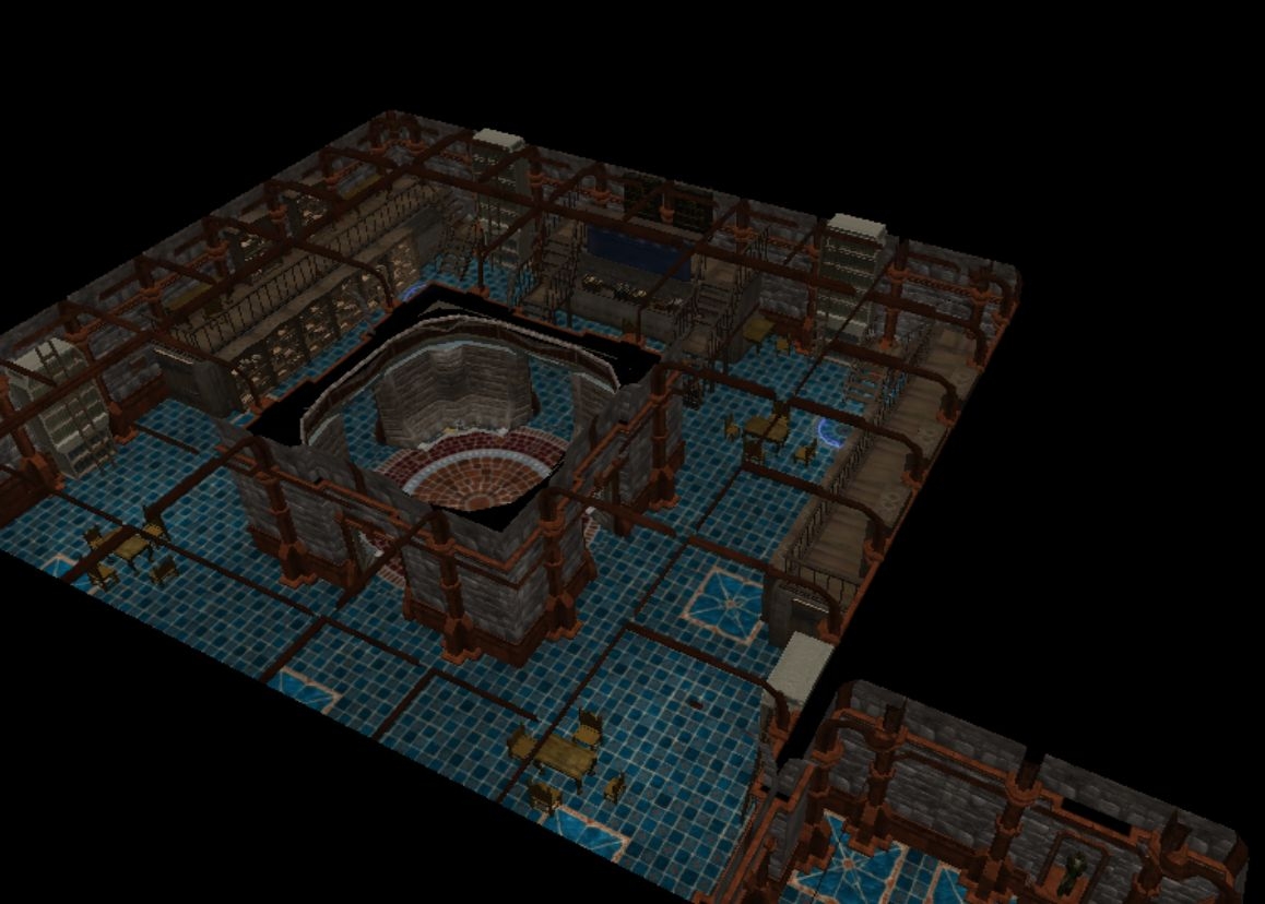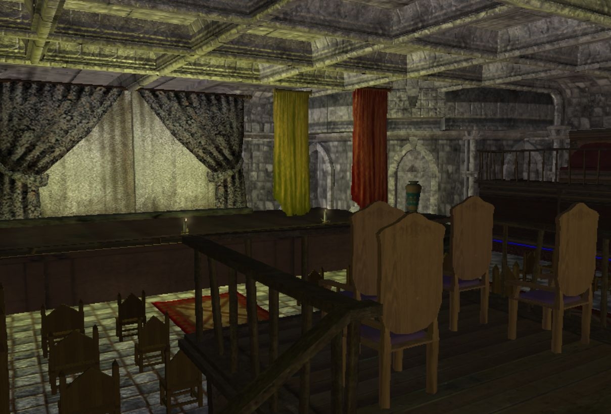This was done prior to MotB so it's a bit more upscale than "The Globe" type theater that OEI gave us. It has seating for about 50, some balcony seating as well. A beneath the stage area with ropes/pulleys (OnUsed objects removed). A poorly faked catwalk portion is included, gratis.