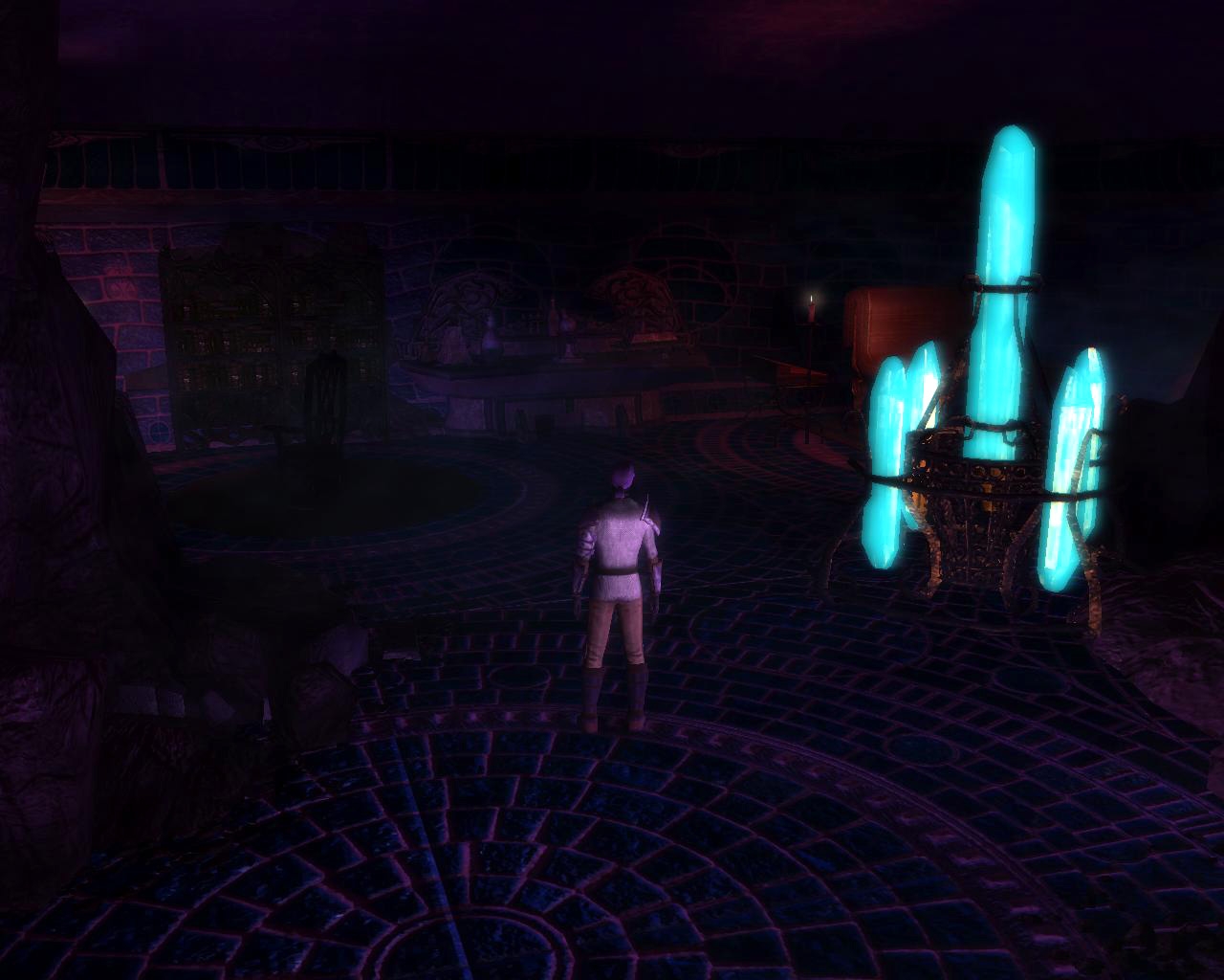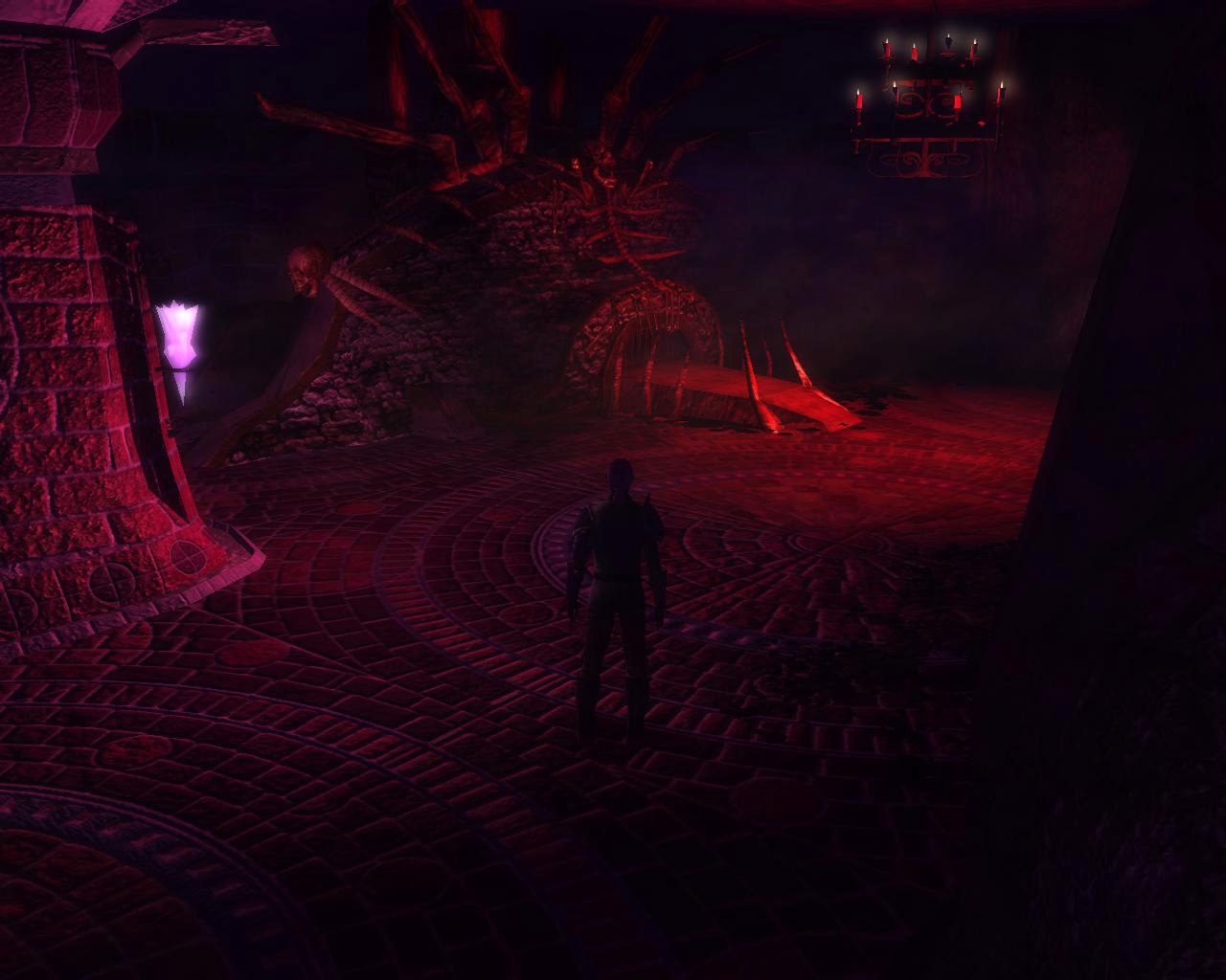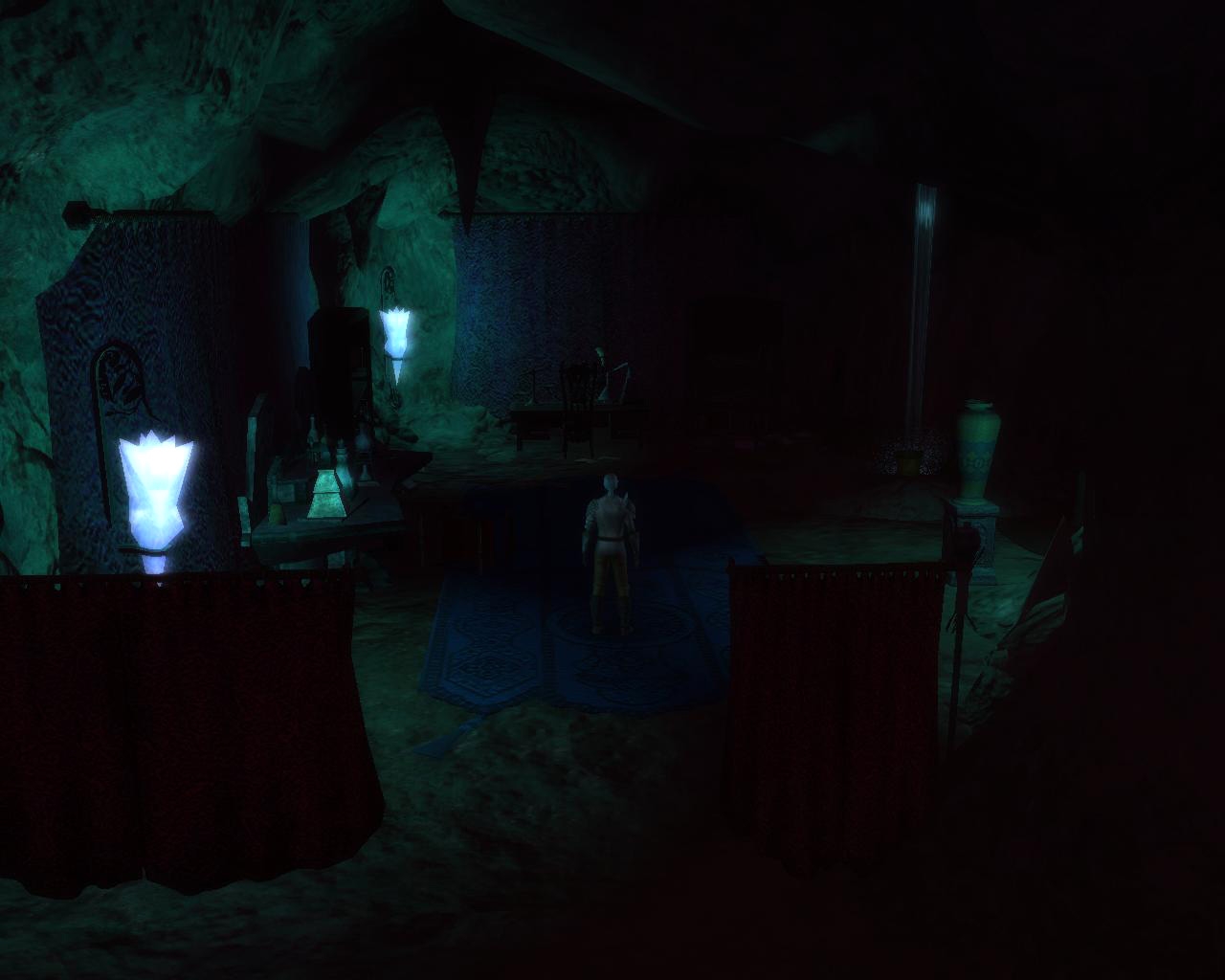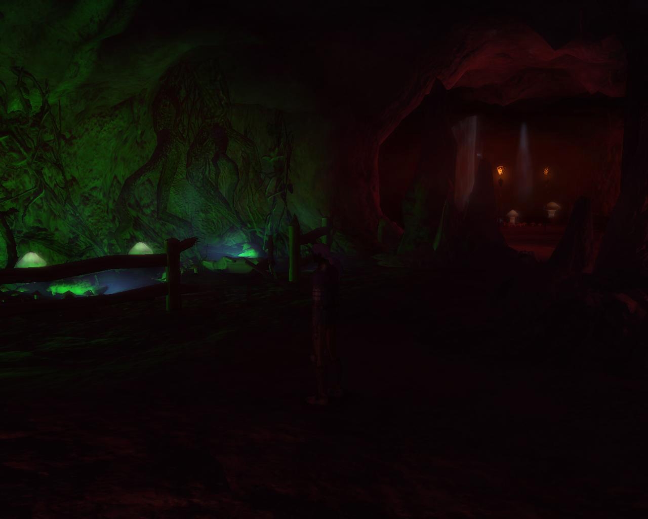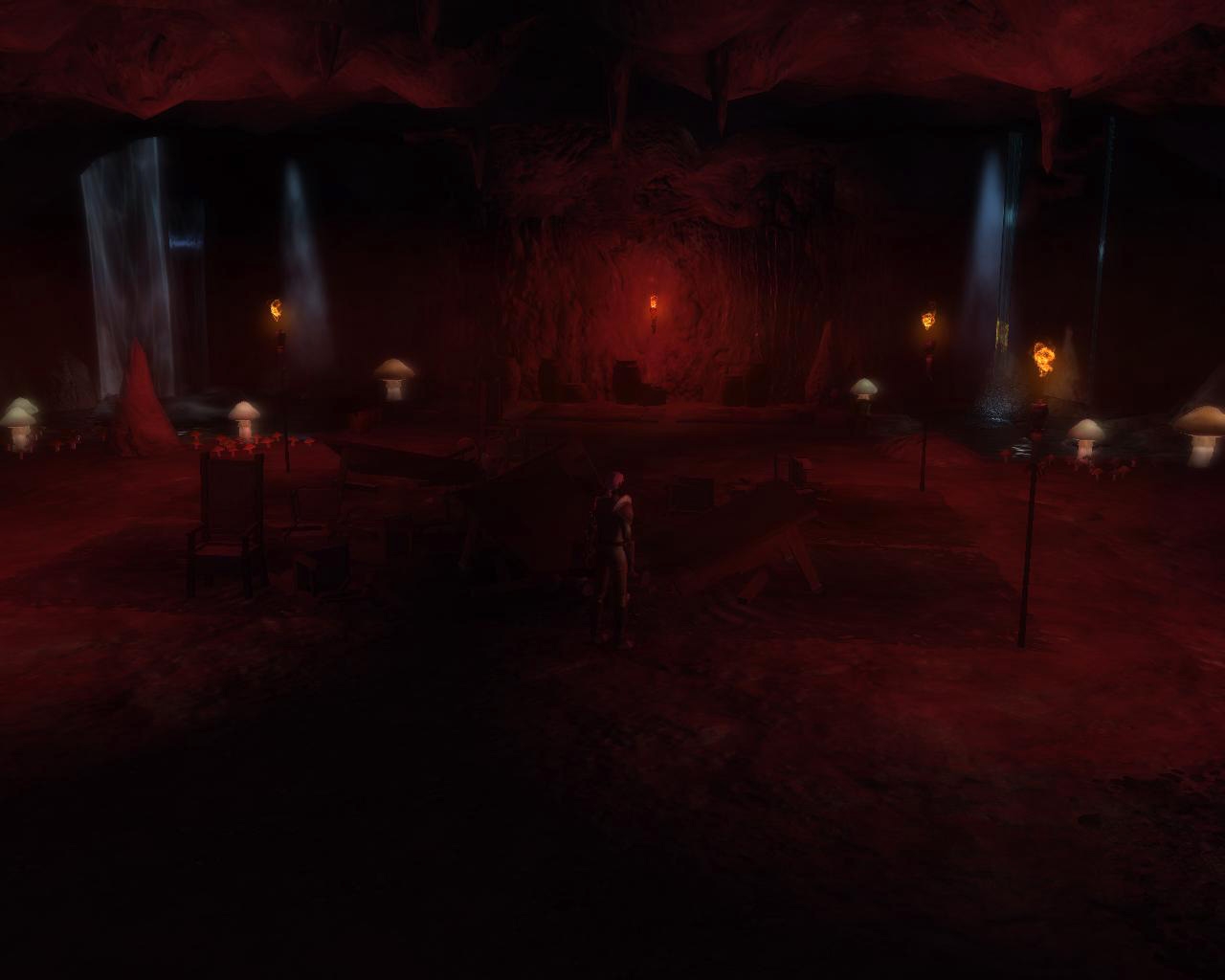 It consists of 2 interior areas a mine camp and haunted ruin. The mine camp area connects to the Ruin area in the mod file. Mine camp is 12x12 and the haunted ruin is 12x21. Both are rather dark and lit with point lights.