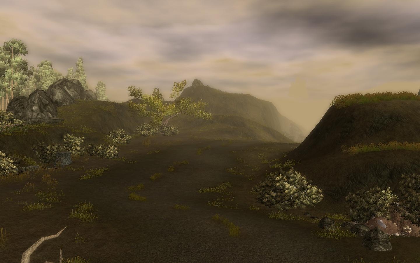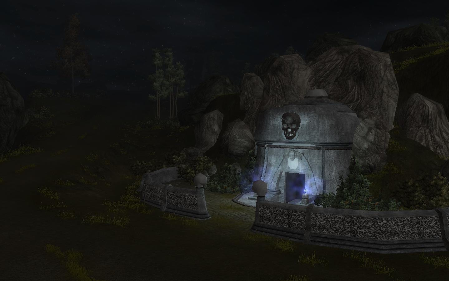 The area is built around a winding road and contains 2 cave entrances and one building, all intended for dungeons/flavor-interiors.