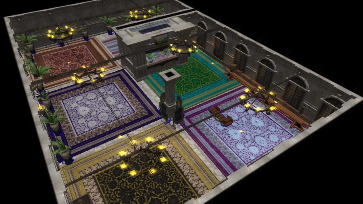 The "spice farm" prefab is mine but isn't much, but I tossed it in there anyway for people as there's not much arabic prefab work out there. The interior are all mine (except where I used the aquarium and Lan's placeable groups of course).