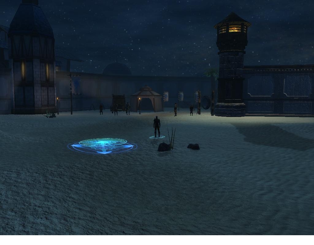 This release also includes all the prefab arabic interiors of my previous release, plus some more. The mod version is all connected, and has placeholder map icons. Some areas are connected via area transitions rather than door transitions because of a toolset bug with the estate tileset (at least in my toolset). The main town area has music assigned, but the rest are blank musicwise. I especially like this area at night.