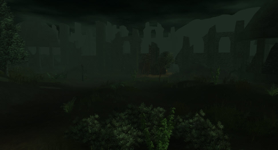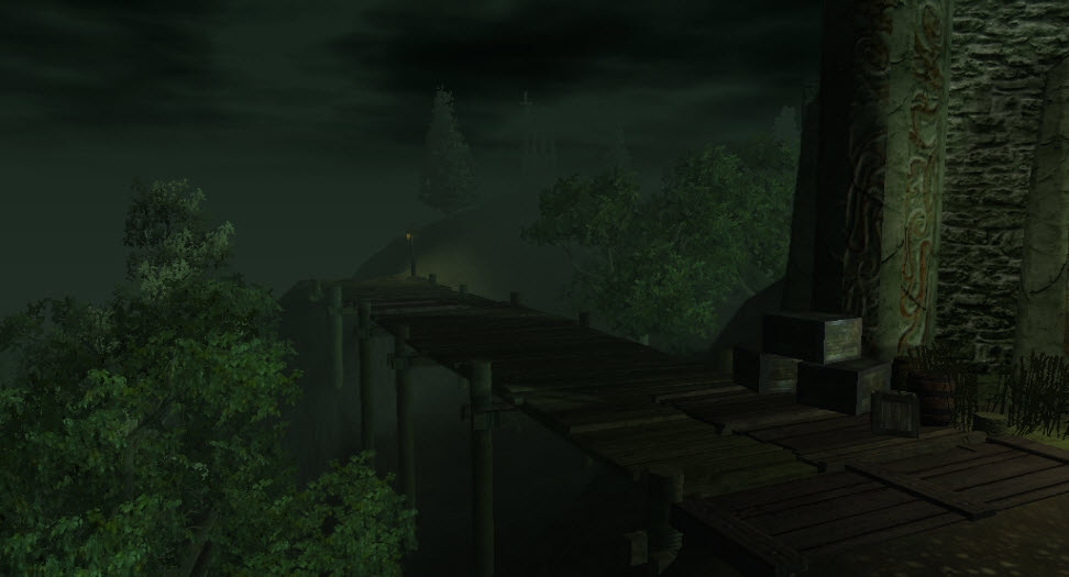 BUT otherwise the area works perfectly. I guess everyone has toyed around building a large ruin with the Sunken City placables but imo this layout is as good as it gets. The addition of barricades and the way the bridge is constructed really implies that someone is trying to make this ruin a (defendable) base of operations. The interior is very "teasing" even if just checking the prefab out I couldn't help but wondering what was going on here. Very inspiring. The area transition at the bridge is also very well done.