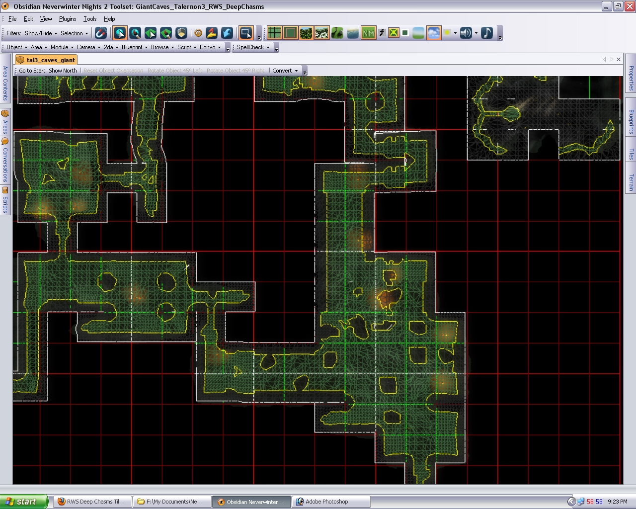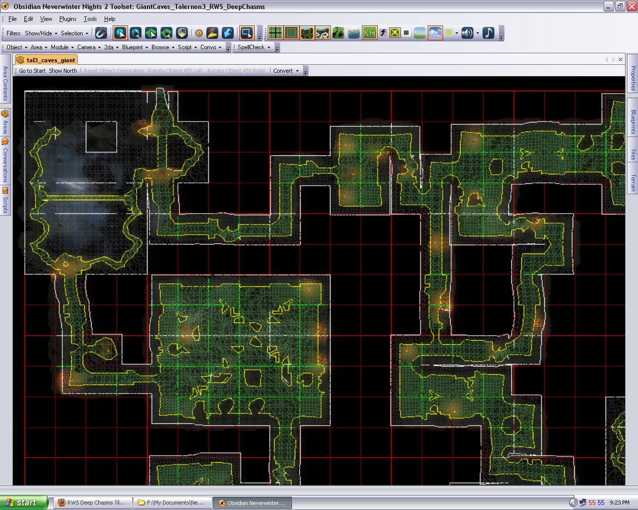 The "square" design was partly due to the fact that virtually no placables were used, and because this specific area was made to work with Giant npc's - who in nature dont like placable filled interiours. They get stuck rather quickly.
