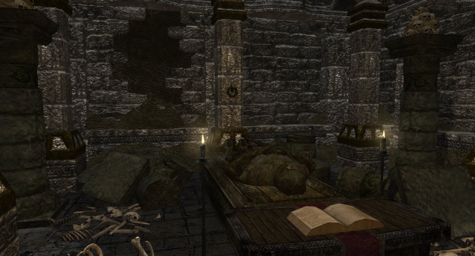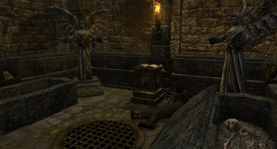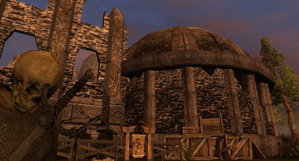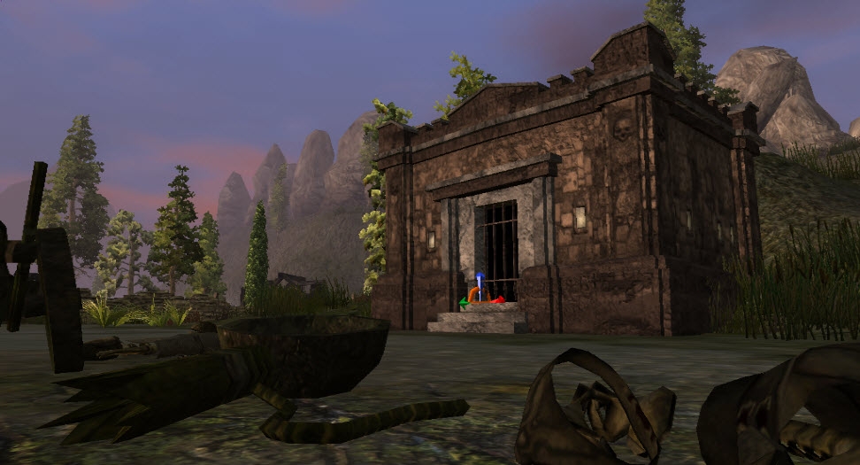 An elven witch master was put to rest here during the elven ears of Aleoud'a. Monks from Rothkel tried summoning his spirit to learn from his knowledge, but was interrupted before the ritual was complete. He rests behind a sealed door in the mausoleum. (The room is not sealed off in the download).