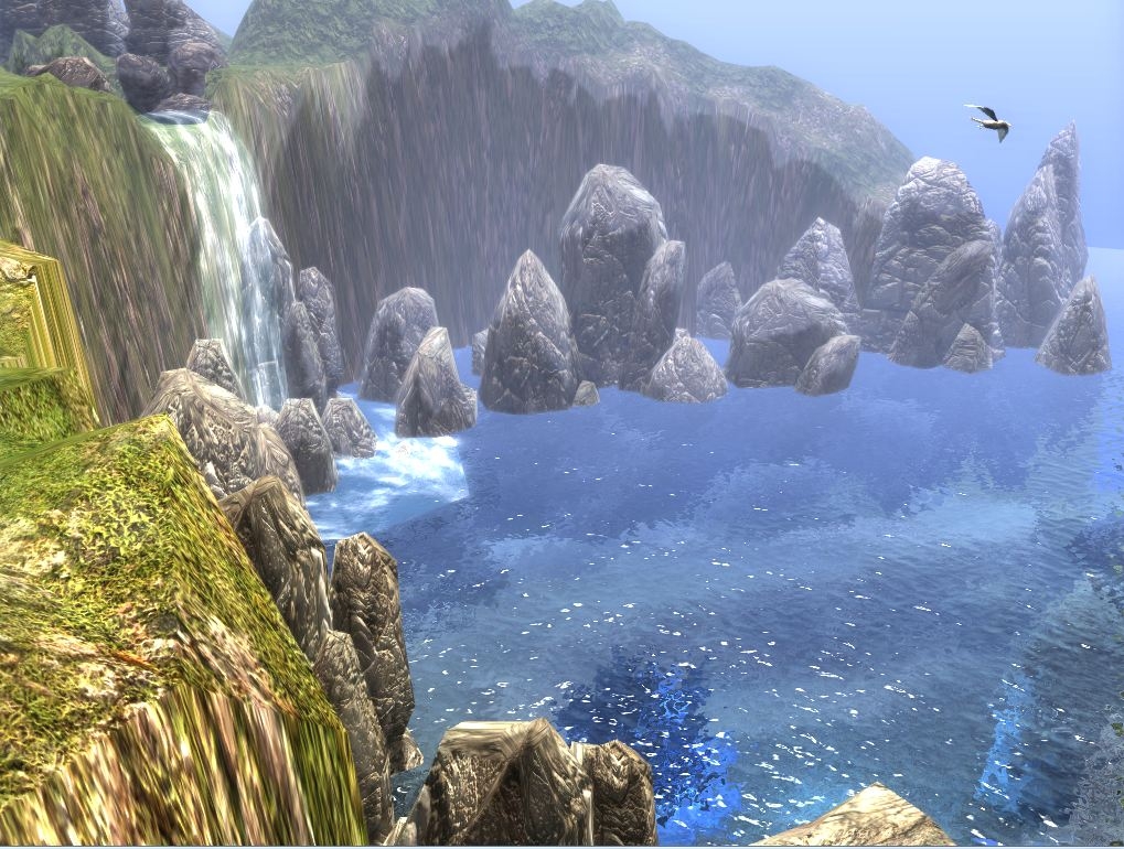 Really great looking area, the sounds, lightning and music really work well together. The water also looks fantastic. -1 for being a little "rough", not a lot of fine tuning, a lot of sharp edges and the like.
