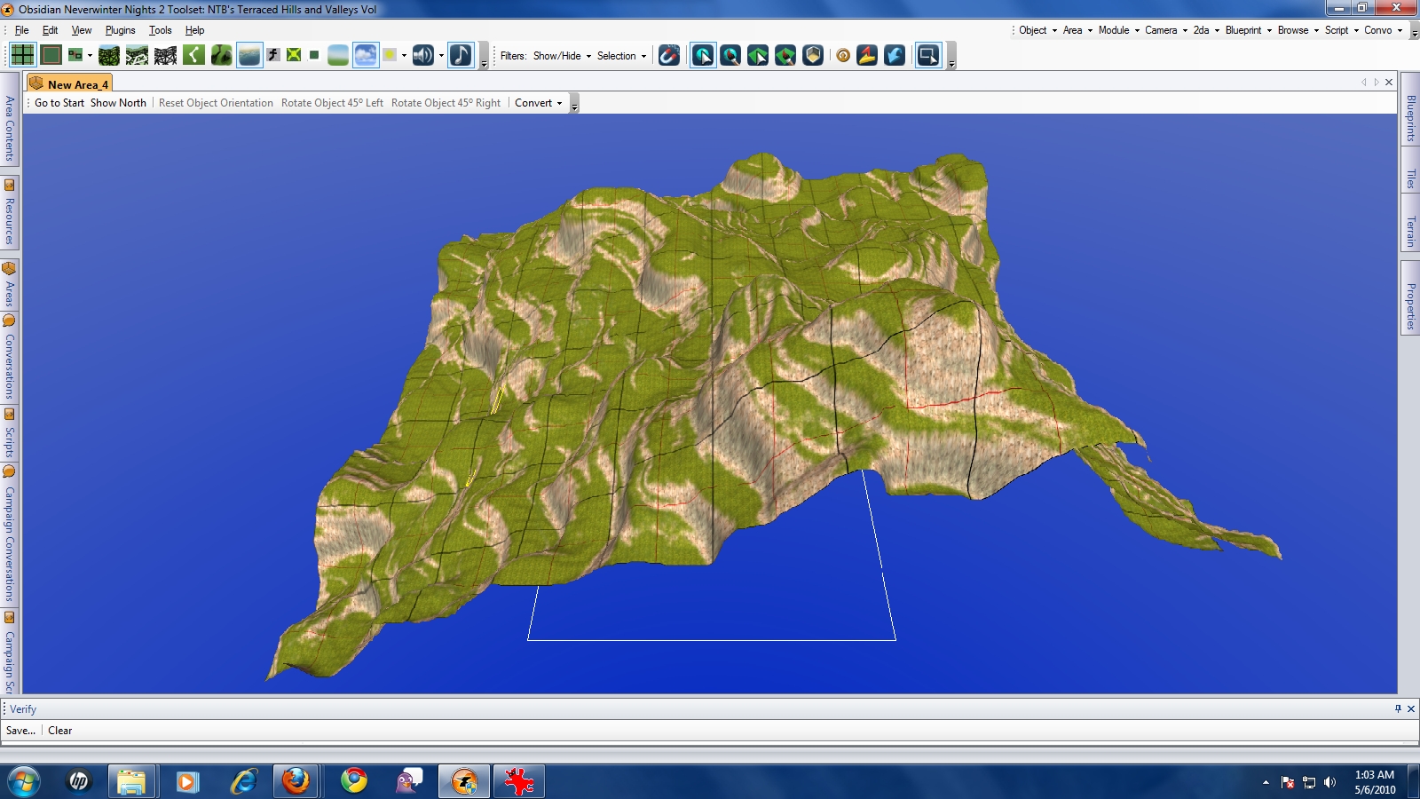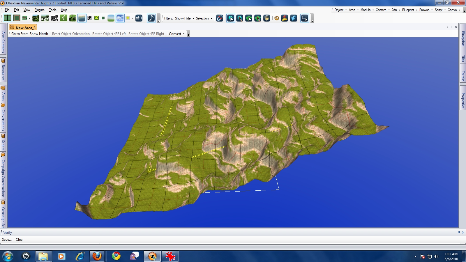 From the maker of NTB's Eroded Hills and Valleys you get this Terraced Hills and Valleys set comprised of a set of 16 connected 24x24 areas arranged in a 4x4 matrix with overlapping borders. A few screenies are supplied to give an idea what the areas look like.