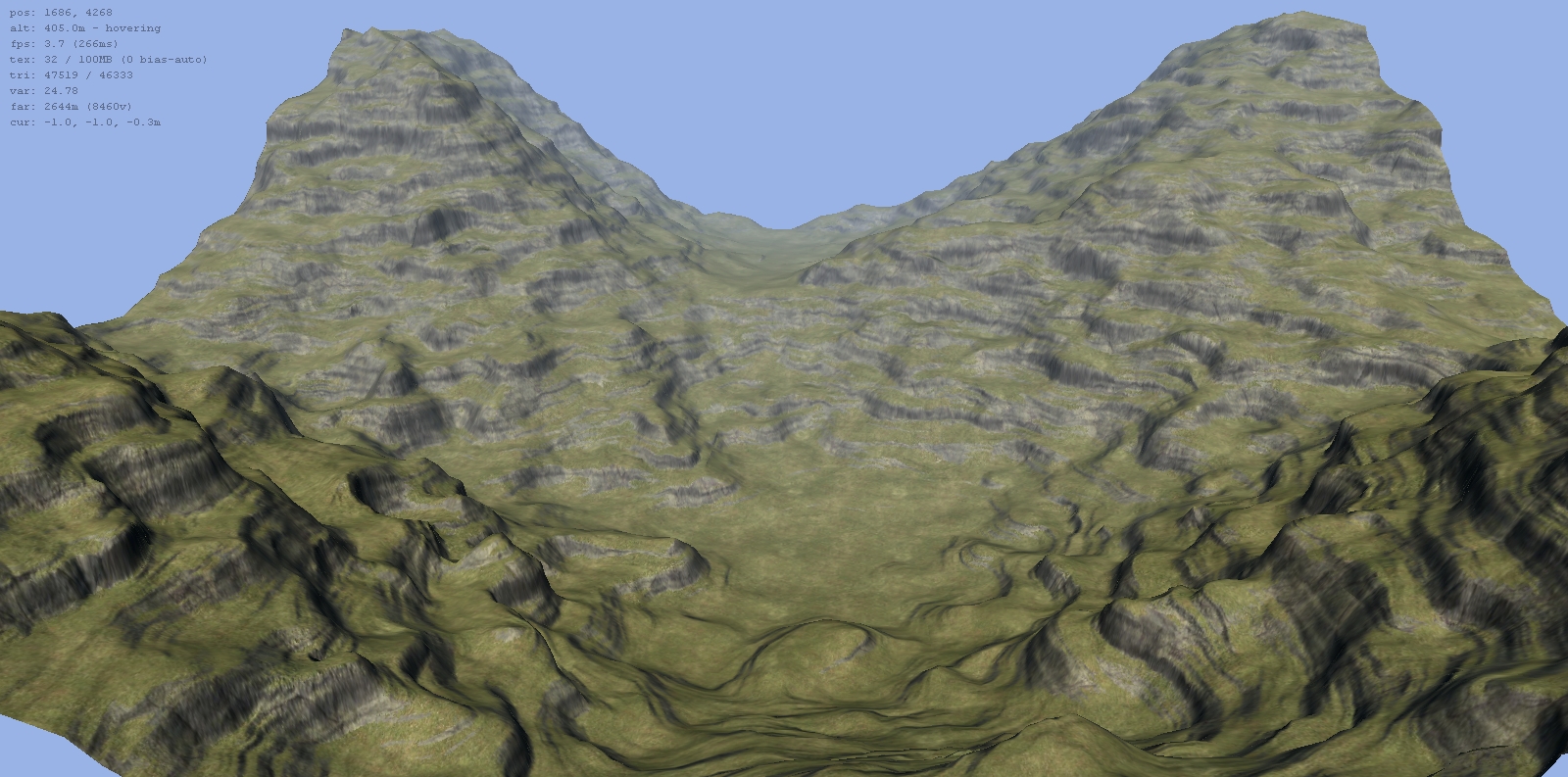 The area spans 960x960 walkable meters wide. The altitude range is 409.04 meters.