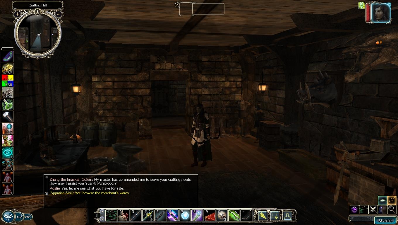 This is basicaly a simple crafting hall I made that I wanted to share.The hall has a golem vendor complete with most of everything you need for crafting, however the store's inventory can be easily altered to fit your gaming world.The goal of adding this to the vault was to supply persistant world admins with a crafting hall that did not use haks or anything, thus making it easy to toss in there and save people some work.Inside the hall are the following rooms...