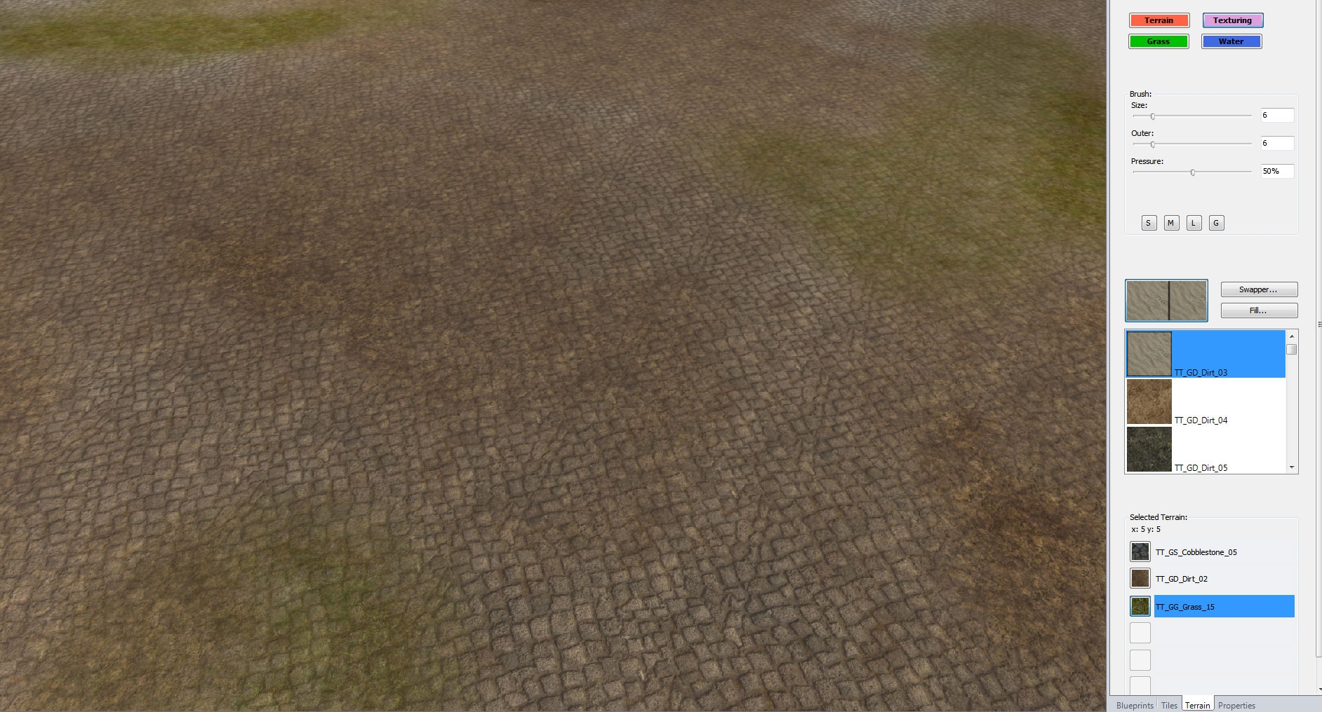 This terrain area 32x32 can speed up your area creation. When you start building a new area, use this instead of a blank area. This has an uneven surface with a mix of textures and colours. The surface is just slightly uneven, so there are no unwalkable gaps but its uneven enough to simulate the wilderness. You can easily change the textures to quickly get a completely different environment (check the screenshots). You can even change textures to create a city terrain, if you flatten the surface. The area size is 32x32 so that you can cut it down to any size you need. Also, if you have your own area already with just the surface (heightmap) - you can use TerraCopa to just apply this mix of textures. Or, you can start with this and just raise/lower the terrain to get the surface you need. Quick and easy - just add water.