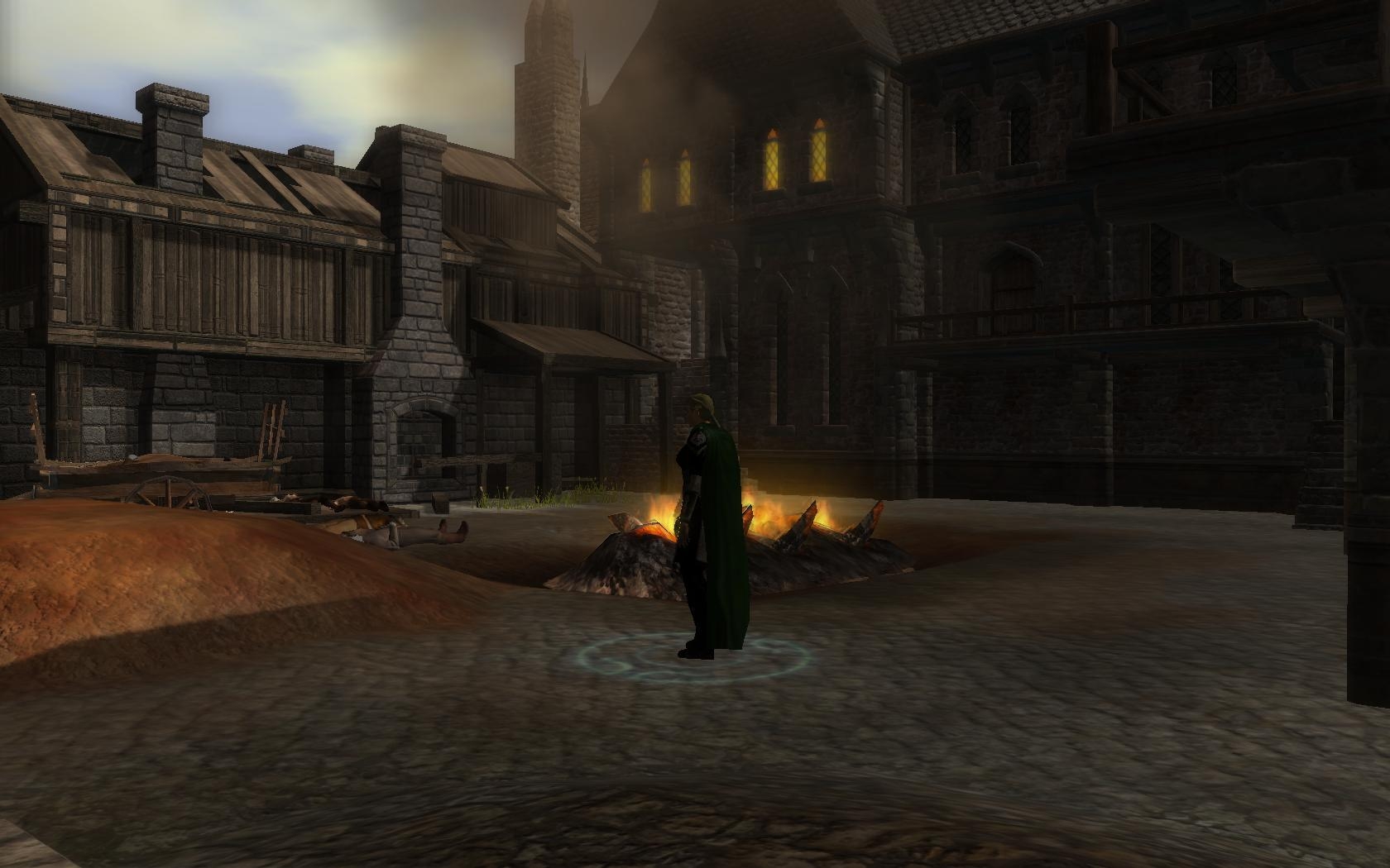 This is an area (12x8) I worked on some time ago and decided I should share it now since it isn't getting put to positive use. The concept is a plague ridden slums. The air is oppressive as the city has been quarantined and the city militia have taken to burning bodies to control the plague. While must of the city is slumish the area in the vicinity of the church are better off.