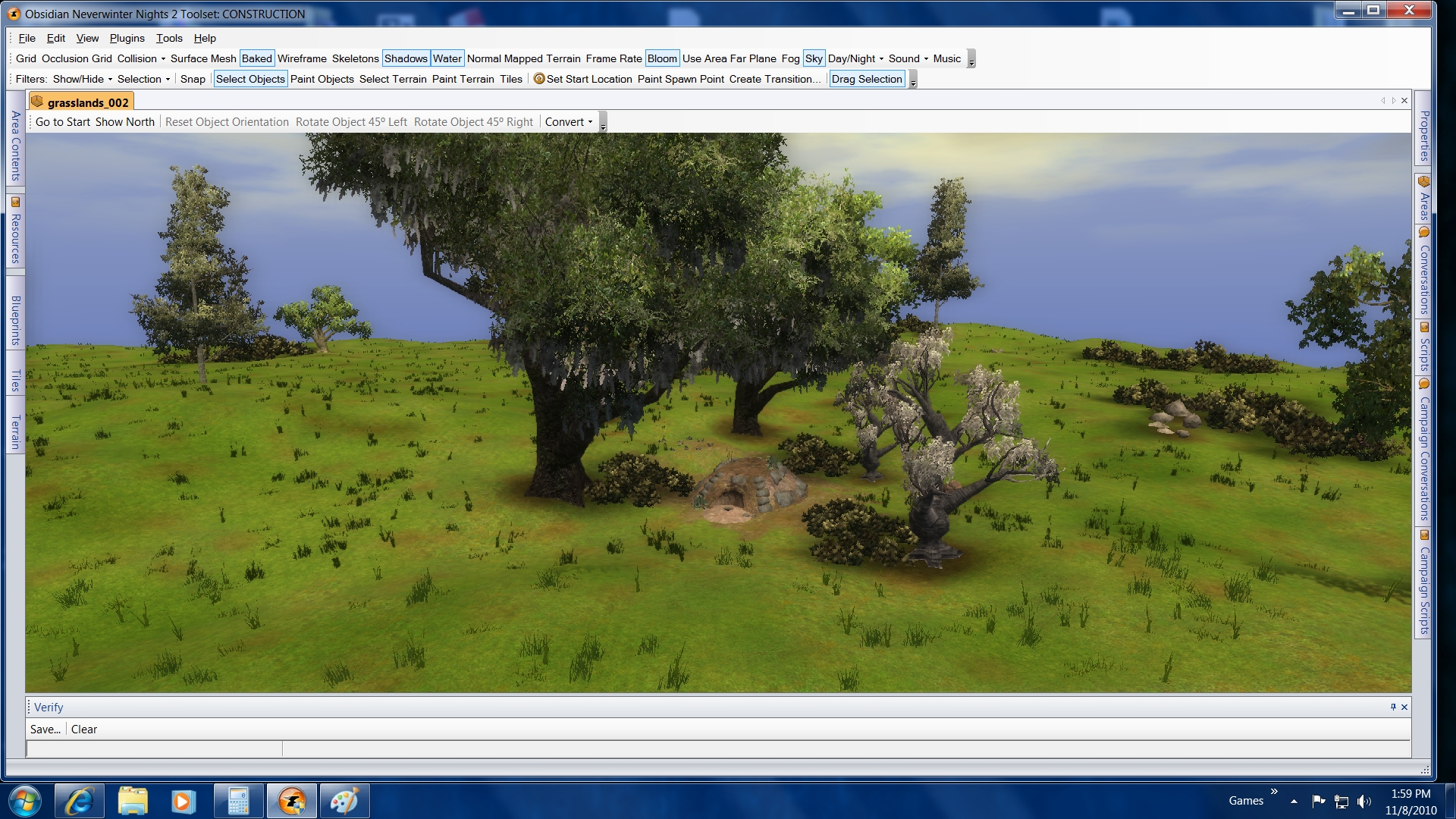 This is my latest area. It's a 24x24 grassy area with trees, moderate grass, and rocks. There are a couple Points of Interest, each marked with a Map Note Waypoint: