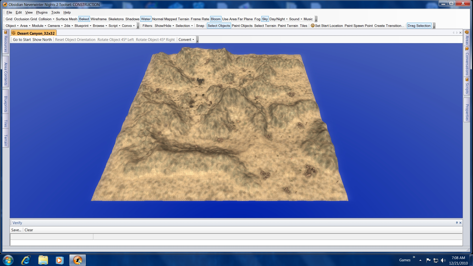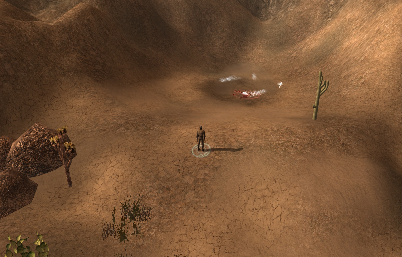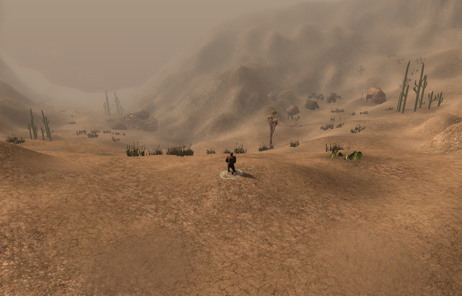 This 32x32 map depicts a desert canyon. It has 3 campsites, a magical portal, a cave at the end of an upward path, a