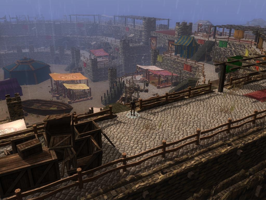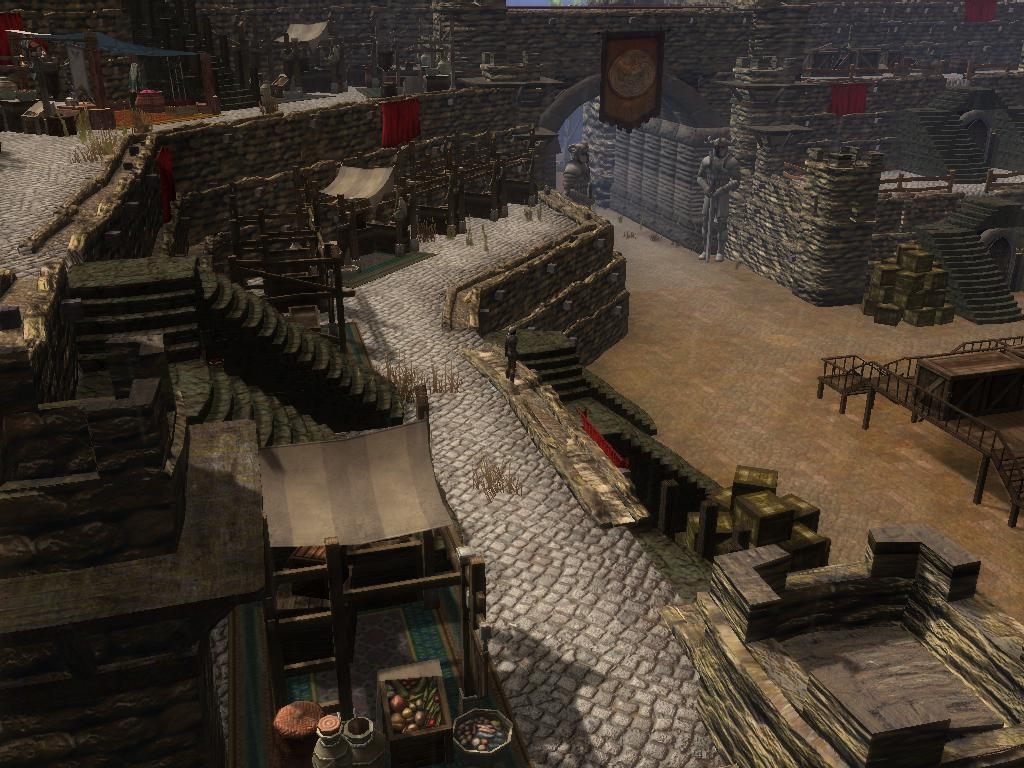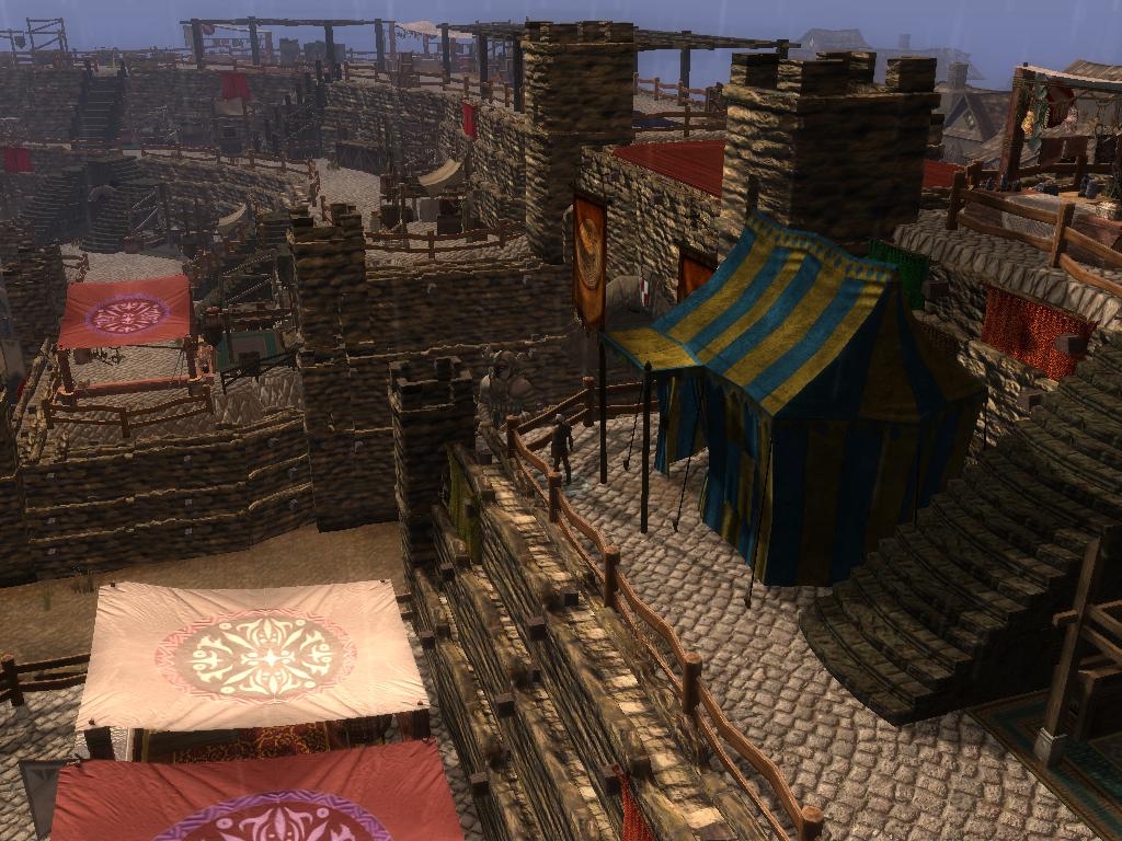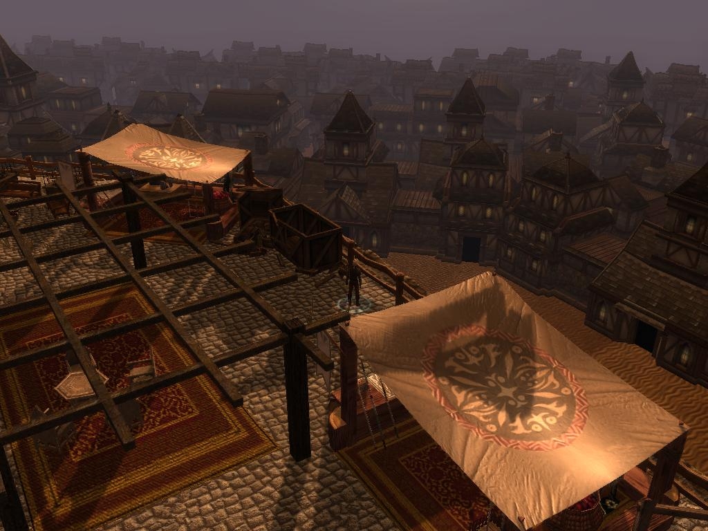 Remember the playing BG2 SoA? Then you'll remember Waukeen's Promenade. I've tried to recreate the area with NWN2 toolset. I hope to capture every detail in the original and add a little extra to boot. The area was originally intended to be used with my new module I'm working on but I don't think I'll have the time, so I'm releasing this as an area prefab to use as you wish. There's over 3000 placeables covered by an area of 20x16. The main issue was trying to bake this monster. The stairs were the main problem, I could only create a ramp type effect, spent hours trying to figure out a solution, but its the best I could come up with, some stairs aren't baked, this was due to the scale of the city, trying to bake multiple stairs in close proximity to each other resulted in the whole tile not baking.
