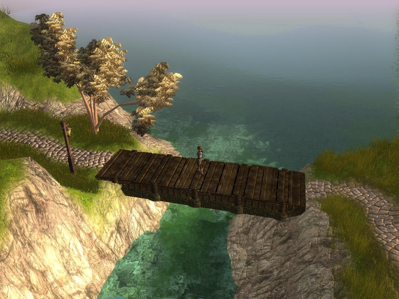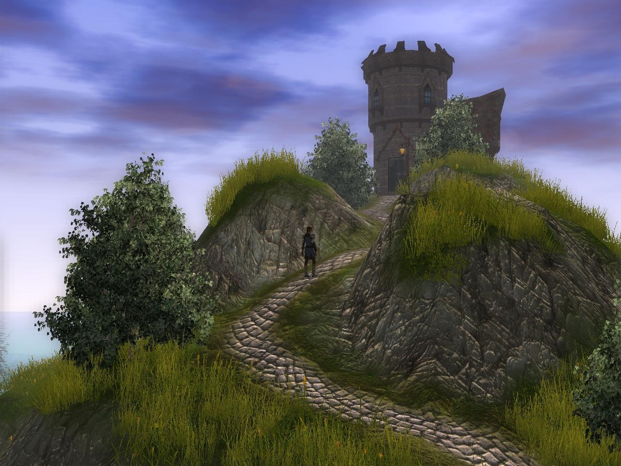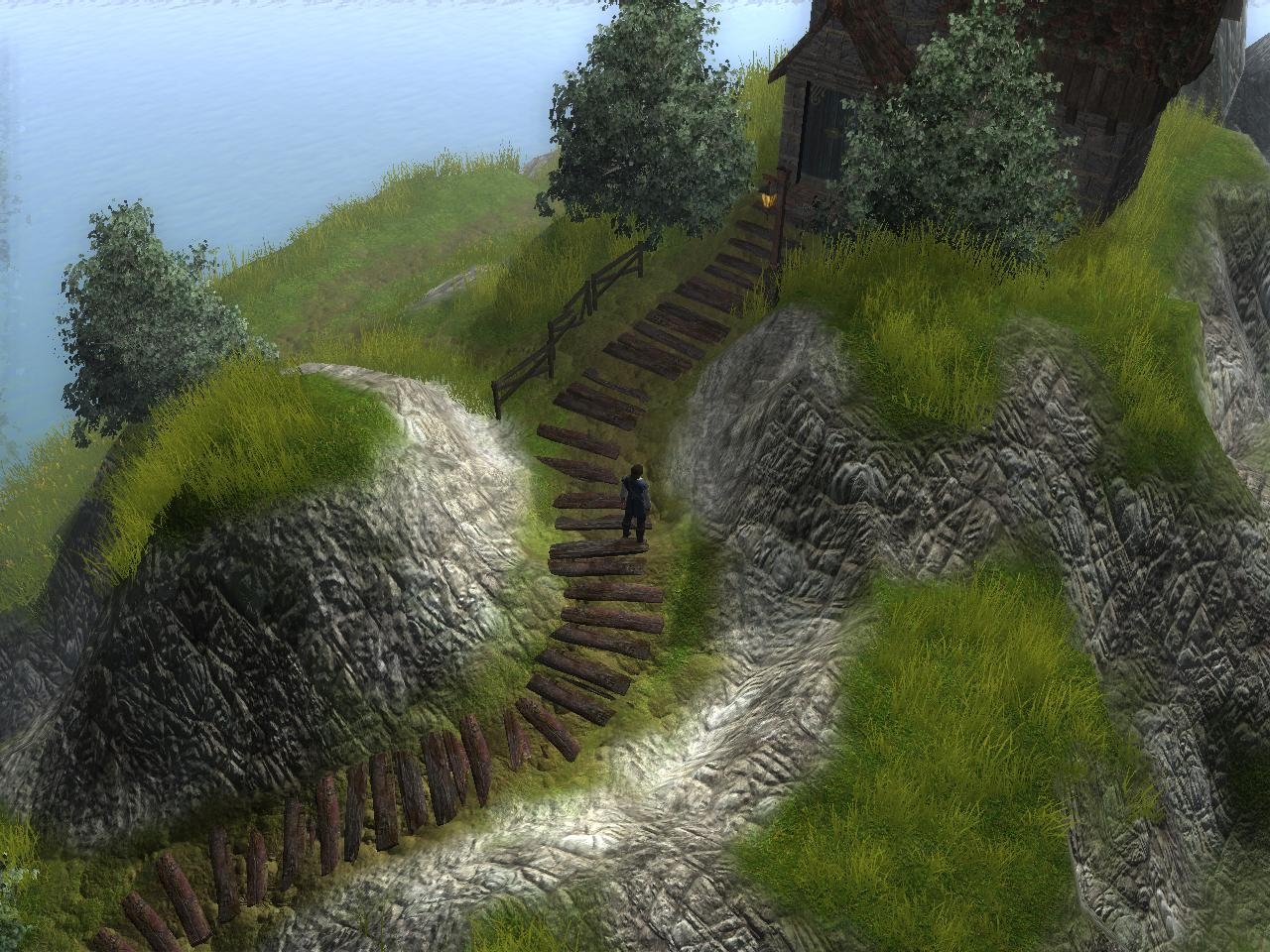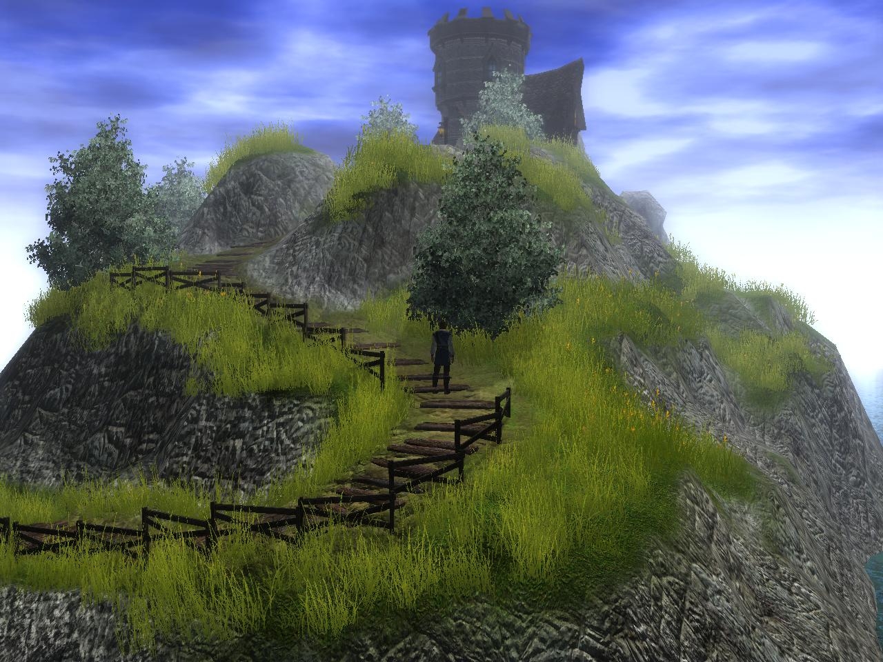 The newer version is basicly the same apart from the path is now earth and planks (needs work), Rain, Lightning and wind have been added, walkmesh cutts have been placed around various objects. (also needing small work) Also an arch has been place over the cobble road for an entrance. (not needed) I hope the minor improvements didnt wreck it. ^^ Ty for comments guys.