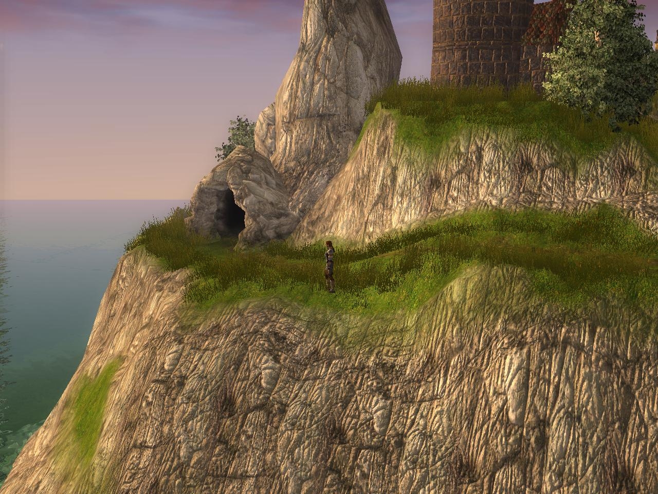 The area consists of a tower and a small cave on an island joined to the mainland by a bridge.