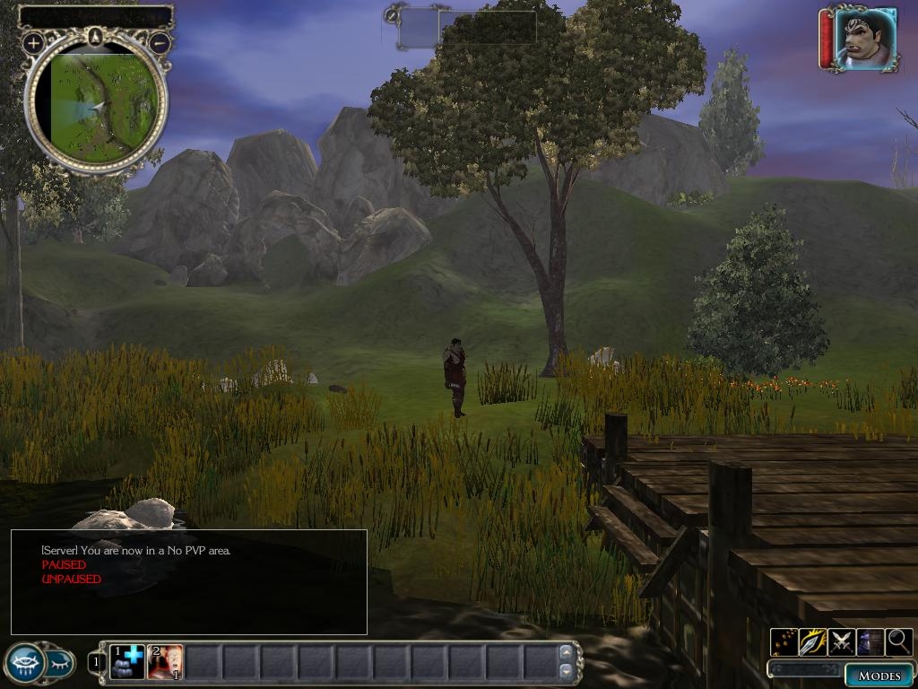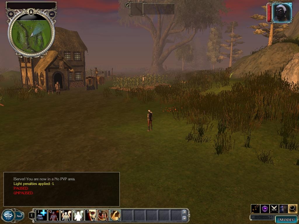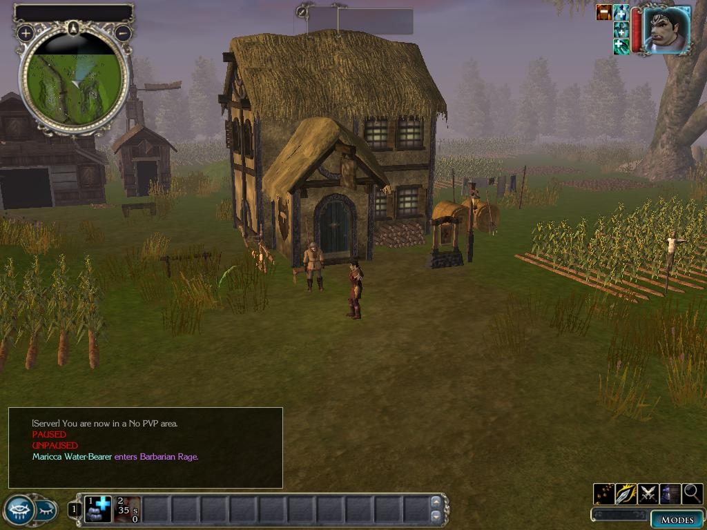 This is an exterior area to a rural village. This would be great as a starting point for players. There are two caves placed in this area (if you can find them).. There is also a gate leading to a small village and a farm with a farmer in front of his house. My ideas on this was an area where level 1-5 creatures could lurk while providing places where you could have early level characters go to complete quests. My idea on having the small farm was to have the farmer have the players kill the "corn beetles" that are eating his crops. This could be a mini-quest that could involve a reward of both experience and a small amount of gold. I am aware that the bridges don't work-if someone could help me figure out why I would appreciate it.