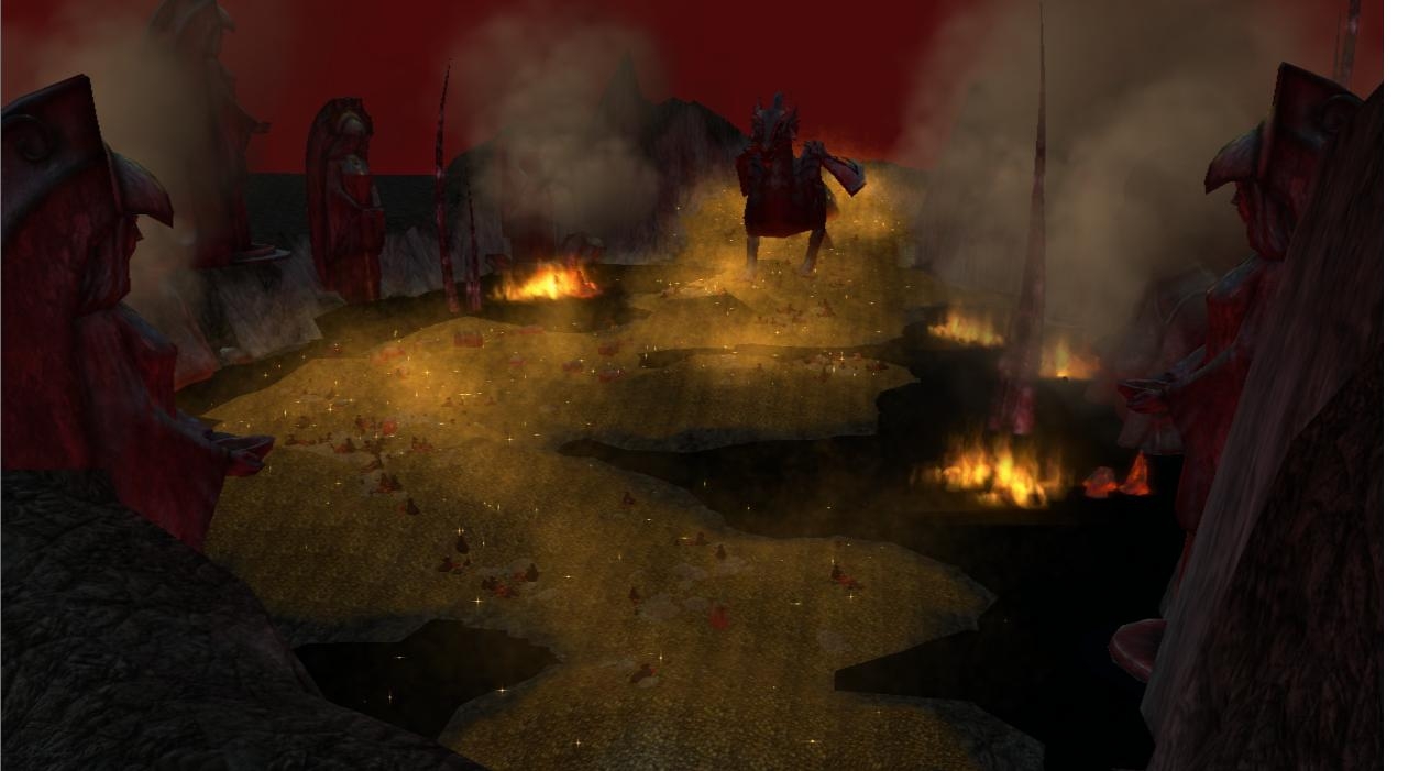 As far as the dragon's lair itself, it contains mounds of gold (a la Smaug's lair, I've always wondered why no one made a lair like it is supposed to be per fantasy lore), the surface is covered with black melted glass, and other details which either you will hate or love.