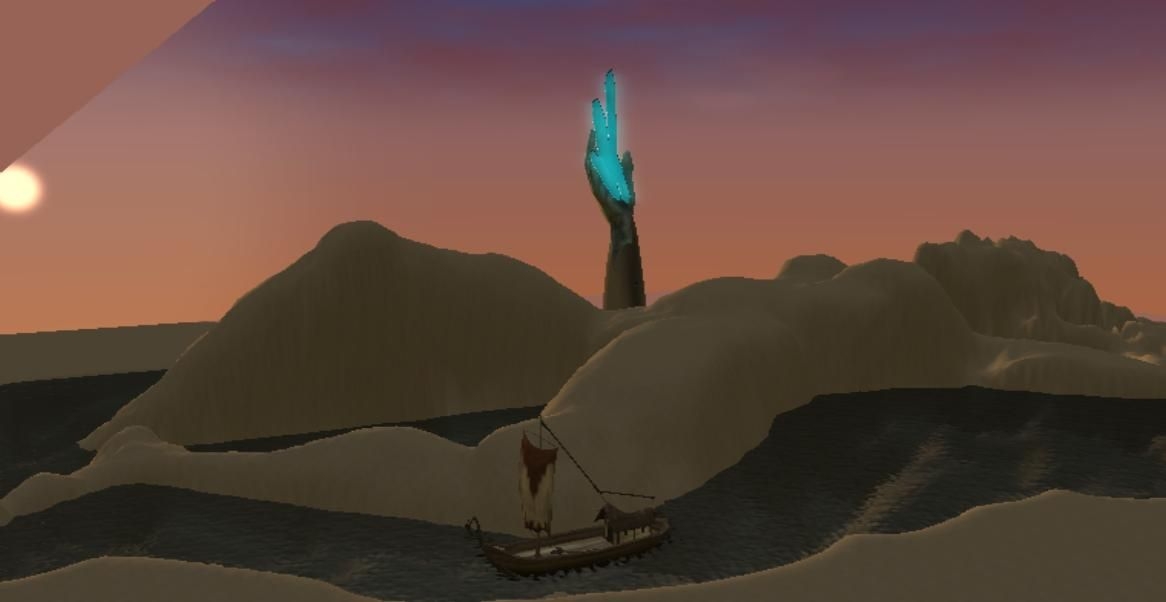 In life, the Goddess Ebha (Gaelic of Eve, meaning �alive, living�) battled to protect her world when it was still boiling in formation. In eternal repose, her body forms the boundary between lands while her towering hand holds a guiding starlight to her loch bed in Glenn Toirbheart. To the west lies a harsh, ever-changing desert. To the north, chaotic highlands sprawl from her locks. To the east grows a giant and dense forest; and to the south a winding river flows out to sea.