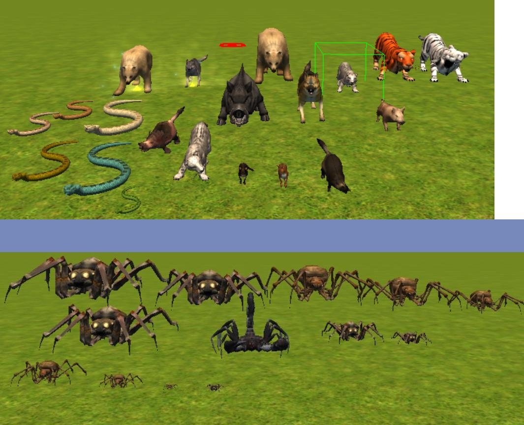 Animals (dung snake*, glacier snake*, greater dire wolverine, greater snow leopard, razor boar, reed snake*, sewerm*, snake*, whip snake*, cats, german dog, piglet, legendary bear, legendary wolf, paragon brown bear*, paragon snow leopard*, paragon wolverine*, tiger, white tiger)