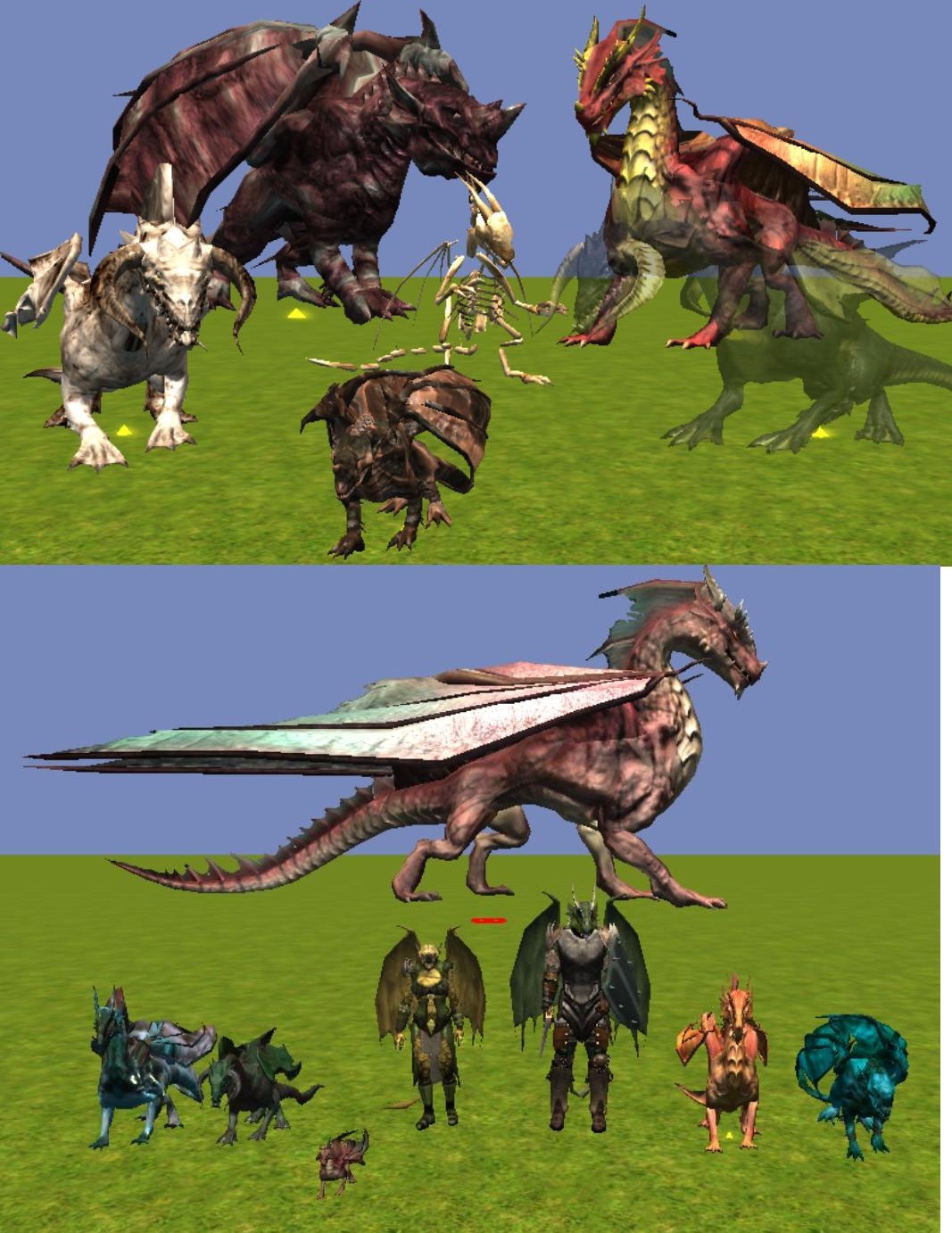 Dragons (dragonkin, air drake*, earth drake*, fire drake*, ice drake*, great wyrm red dragon, pseudodragon)