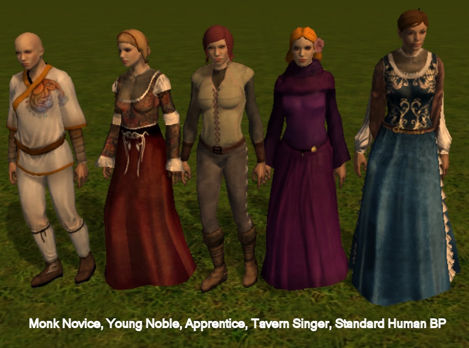 - Most BPs have been rescaled, retinted and/or had changes to head, hair or clothing. The female Street Artist is now a Tavern Singer