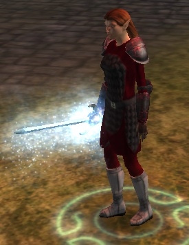| Forged in the cold wastes by an unknown hand, the Frost Brand longsword burns with a cold blue light that protects its bearer from heat damage and inflicts cold damage upon those hit. Provides +3 to hit and 1d6 cold damage. Also provides damage resistance Fire 15/-. Glows with blue light. Allows bearer to cast the spell Ray of Frost 3 times per day. |