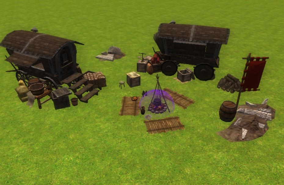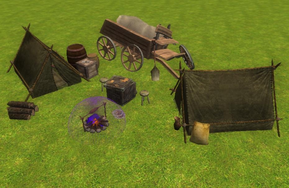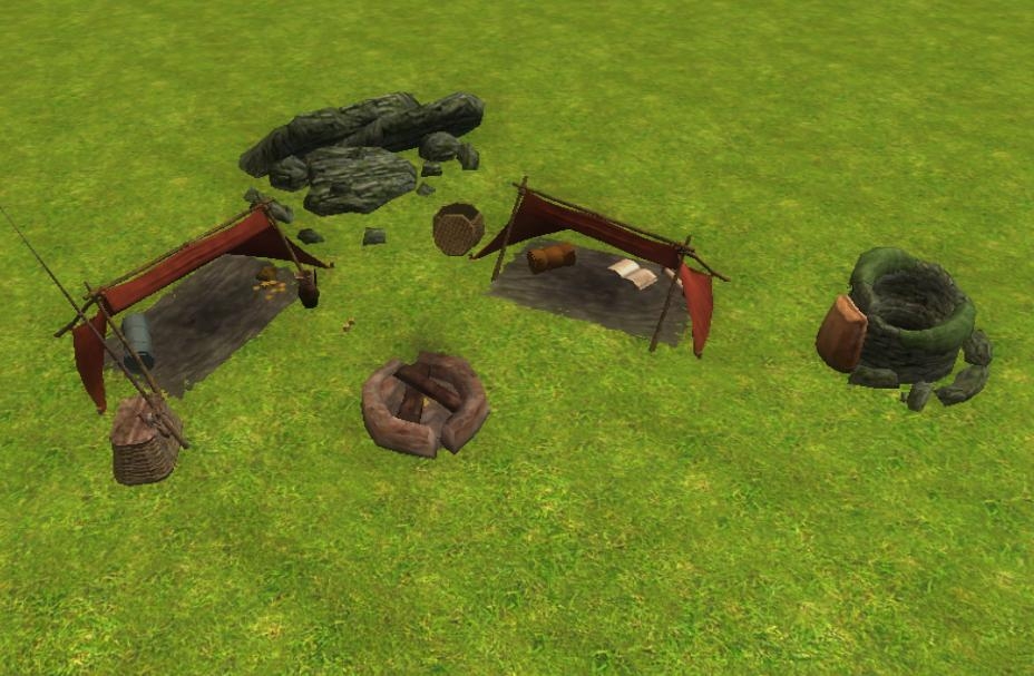 Three prefabricated to install some camps of fortune in full nature, plaçables, sounds and effects included/understood, history to facilitate the task of the some builders likely to appreciate this modest work.