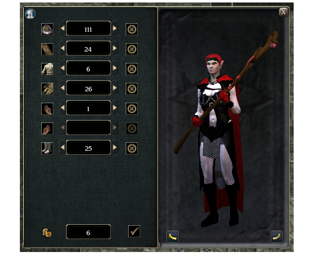 This UI driven system allows you to select from a range of item appearances for your visible equipment! It can be installed for use in the official campaign, or added to your new module or online world. You can preview different armor, weapons, cloaks, helms, boots, gloves and shields.