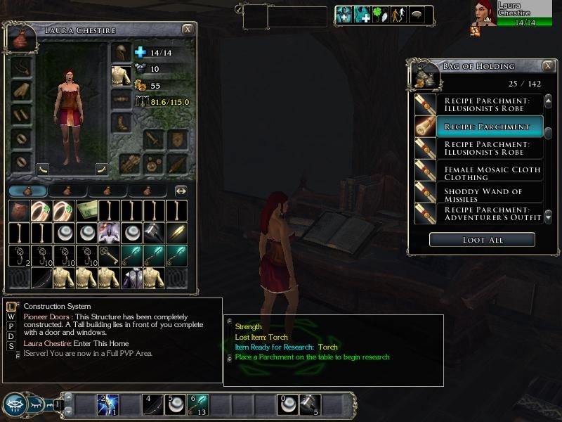 Though, there's a serious lack of information. I am well aware you are working on it, but a decent source of information is a must-have to use this system. First of all I'd like to know what functions are broke, and what meaning several tools have. If I am not mistaking, copying recipes isn't possible. Besides that there are some things that remain unclear to me. How can you farm, build, etc.? Why are there several tools in-game like a Smithy's Hammer (I forgot the exact name), as it doesn't seem I need this tool in order to use a Blacksmith's bench. Some items require a metal ignot, which I do not seem to find in-game. By editing the requirements everything works fine, but is a metal ignot used as a general requirement, or does it actually exist? Some recipes mention an particular workbench is required to craft the item, but in the end I wasn't able to create the item there, but instead on an other bench. (e.g. Scroll Web)
