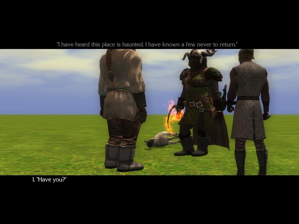 The scripts are in an erf file and the six different types can be tried out in the demo module of one area. In the module the bones and carcass represent the center of the triggers. The carcass is for the party conversation between the three of you.