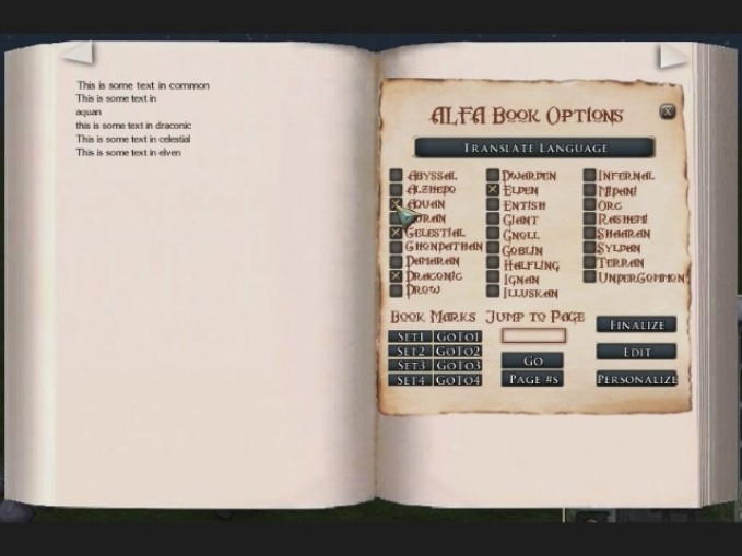 The books allow PCs to read and write books in game in 27 different languages using 14 different alphabets each using there own individual font.